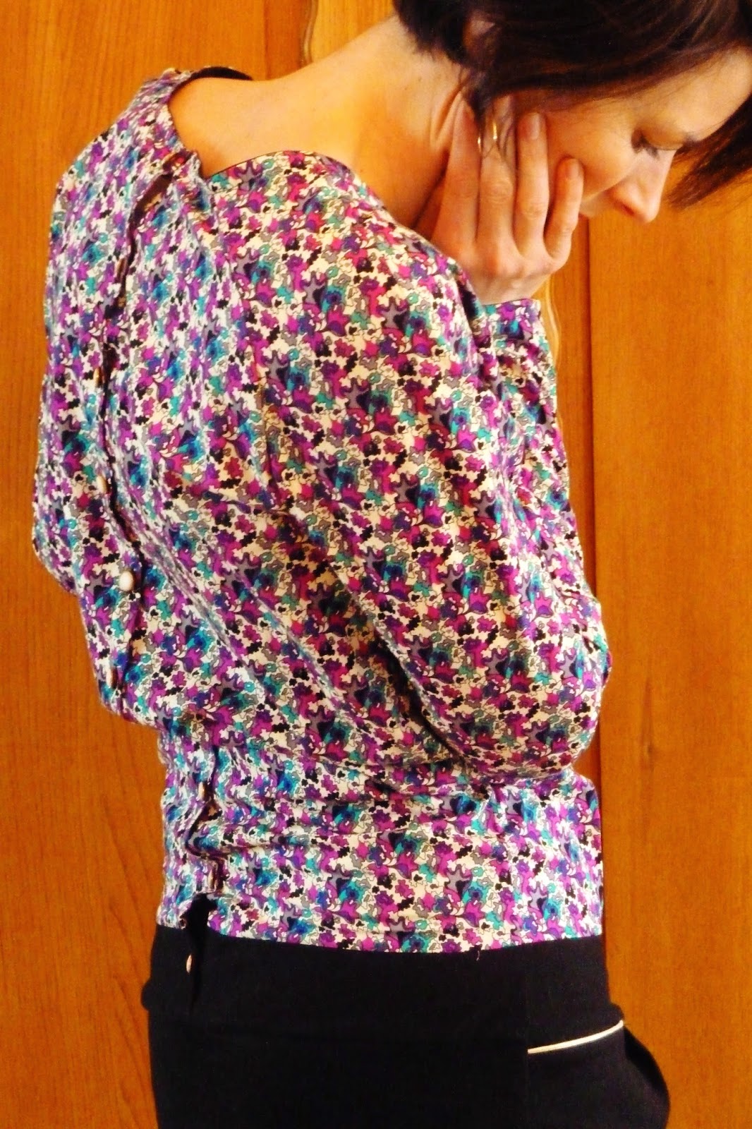 Ce patron est un peu plus long à réaliser que les autres. Il faut d’abord réaliser la jupe, ses plis dans le dos et devant, ses poches à l’italienne et y insérer le passepoil, puis réaliser le haut avec aussi ses plis, les 10 boutonnières dans le dos (non tu rêves pas, 10…) puis assembler le tout et effectuer les réajustements nécessaires! Me concernant, j’ai du reprendre un bon cm de chaque côté sur l’ensemble…. Pas top, je peux à peine mettre les mains dans les poches! Mais sinon elle est parfaite!!!