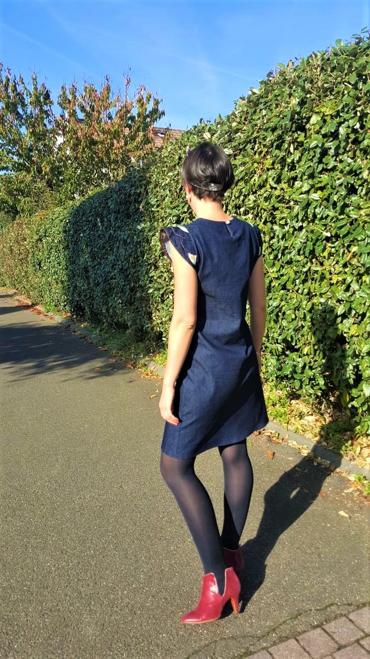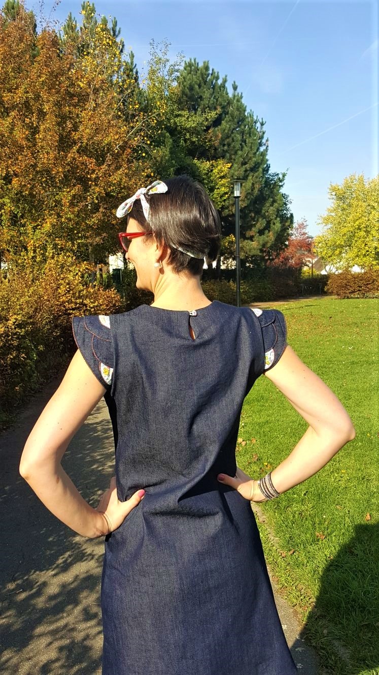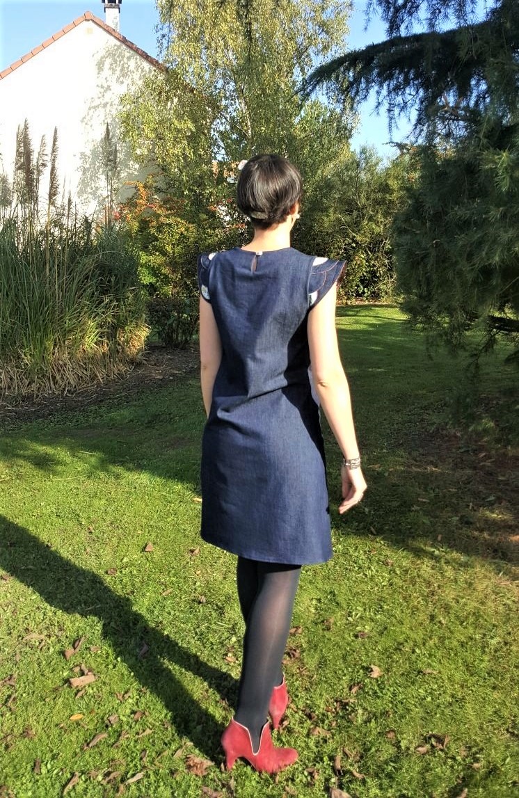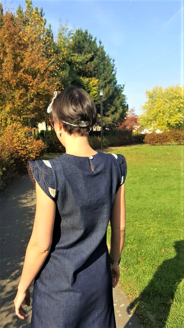 Ce tissu jean des Coupons de St Pierre est parfait, il possède une belle tenue et un peu d’élasthanne donc idéal pour cette robe ! Et celui lui donne un aspect plus cool et passe-partout !