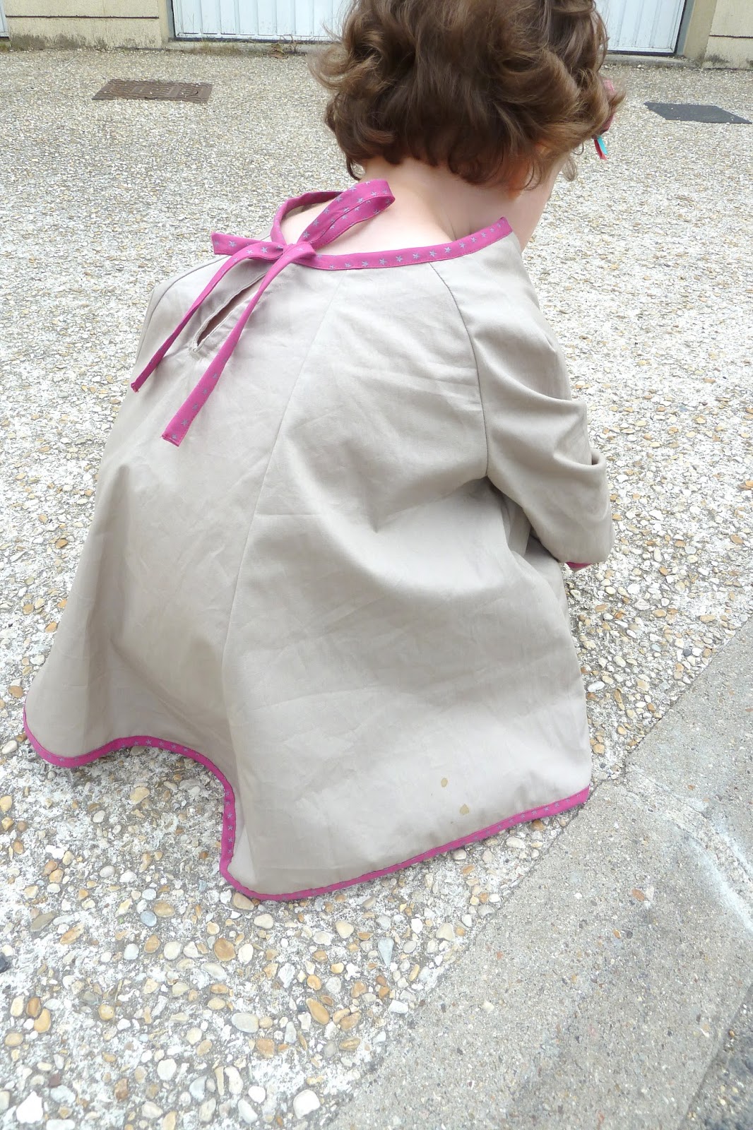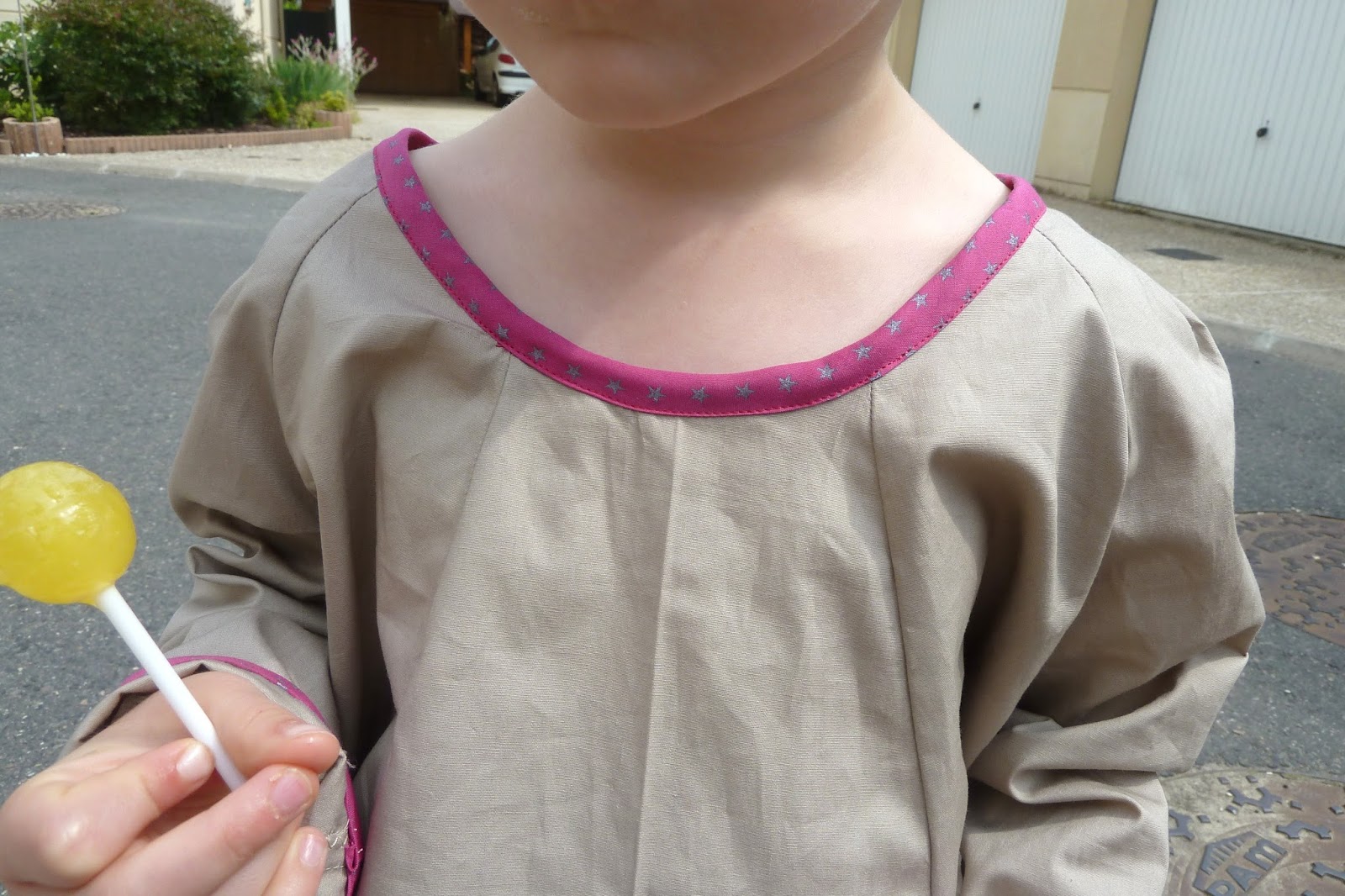 Attention cependant si on se lance dans le modèle….Je l’ai réalisée en 4 ans pour Léontine qui a 3 ans et 3 mois et la poulette est peut-être grande mais menue….le cou est un peu dénudé je trouve! Et j’ai du faire des revers aux manches alors que j’avais déjà coupé avant…
