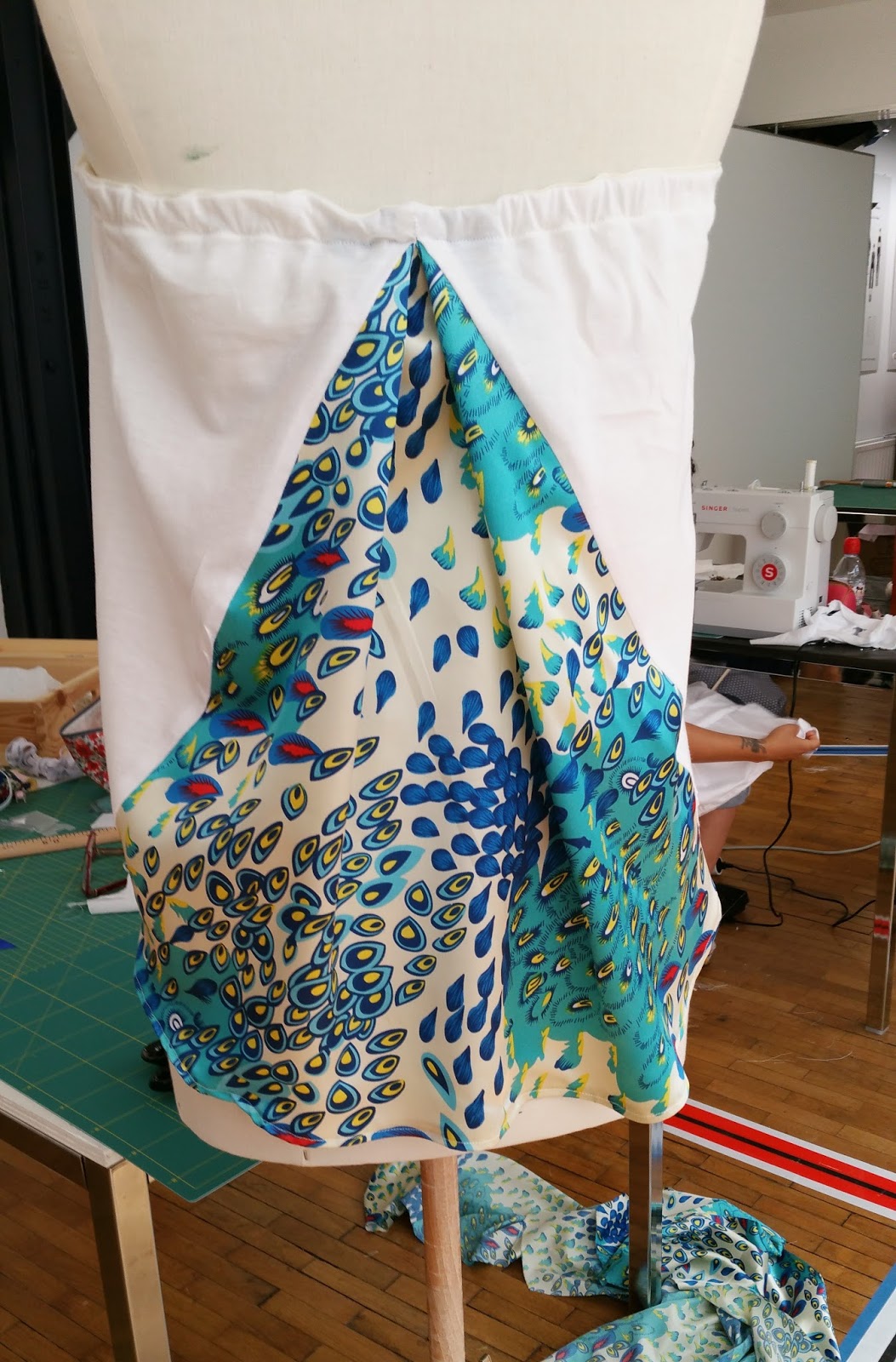 5 min de pause, de quoi faire une pause pipi et avaler quelques sucreries (de mon côté tout avait été éliminé par mes glandes sudoripares lol) , et c’est reparti Go go go !! On nous met dans l’ambiance et on repart direct pour 2 heures d’épreuve patron : nous devions réaliser une blouse raglan en crêpe et tissu à carreaux, élastique aux bas des manches, biais à l’encolure et bride au dos. Franchement, un modèle tout sauf moderne et tendance mais bon…