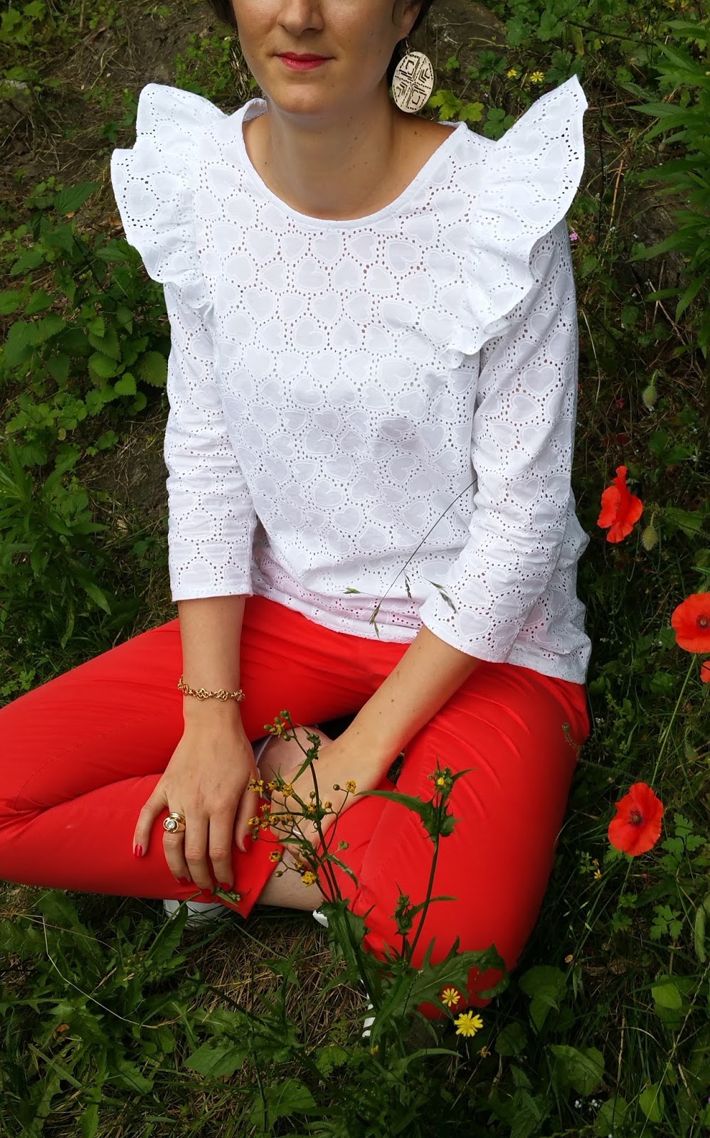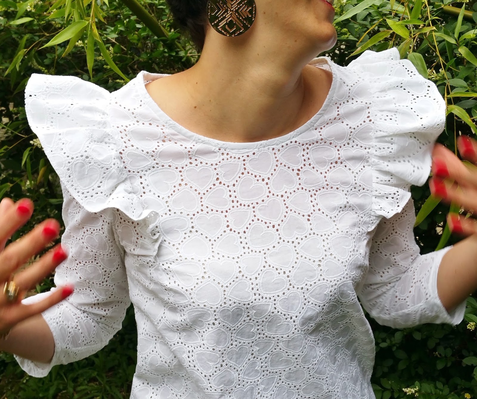 J’adore par-dessus tout la broderie anglaise !! Quelle finesse ! Elle est légèrement transparente donc je l’ai portée avec un petit top, on ne le voit même pas !