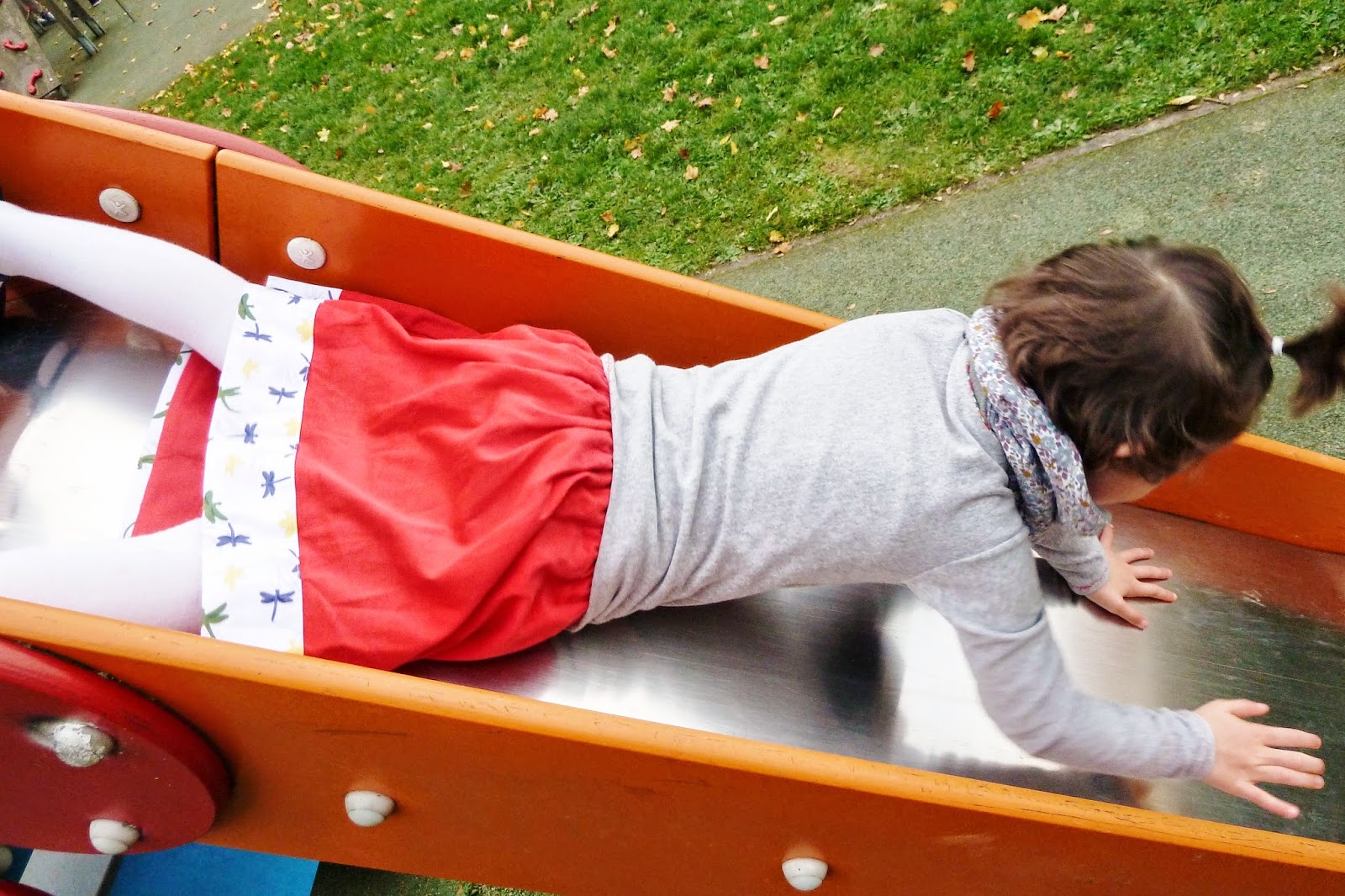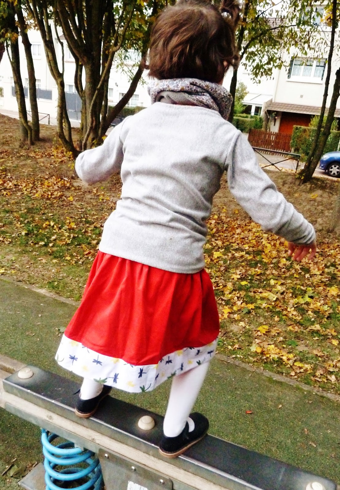 Ensuite, voilà la jupe froncée tirée du même livre, un mix entre le 4 et 6 ans…