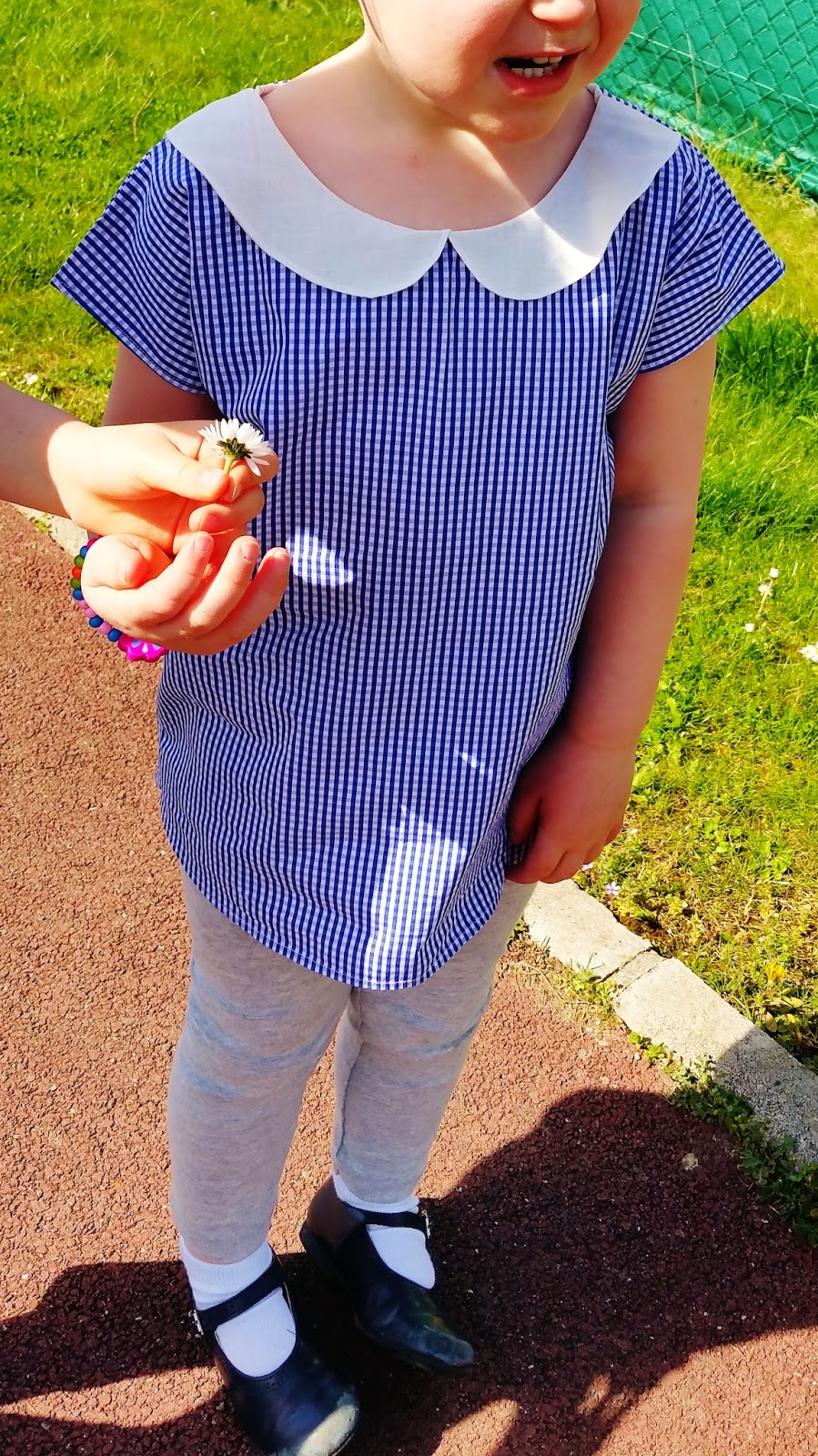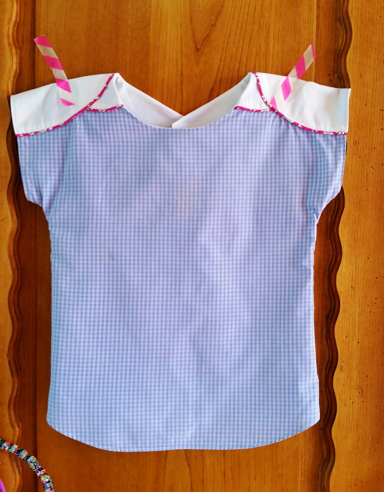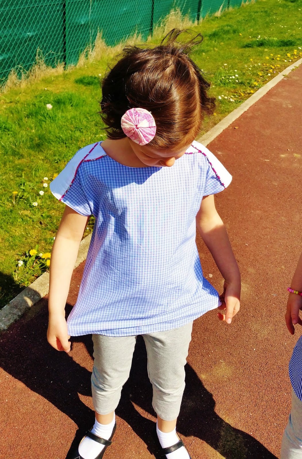 La looooose !!Bon, j’exagère hein mais c’est un peu ça …En fait le trop top c’est LE patron à avoir absolument!! C’est pas compliqué, à lui seul il vous remplit la garde robe de vos rejetons en un rien de temps! Et impossible de deviner que toutes les versions proposées proviennent du même patron!!Pour le découvrir je vous invite à cliquer ICI J’ai rapidement craqué pour sa version B et son adorable V dans le dos….Au hasard de ma montagne de chutes de tissu, j’ai retrouvé une chemise de mon mari, déjà découpée, et je me suis vite rendue compte que toutes les pièces rentrait! j’avais oublié l’avantage de coudre petit… Du coup ni une ni deux, j’en ai piqué une seconde!Aujourd’hui, je vous propose donc de découvrir deux versions B : l’une avec un col Claudine et l’autre avec les épaules pétales!