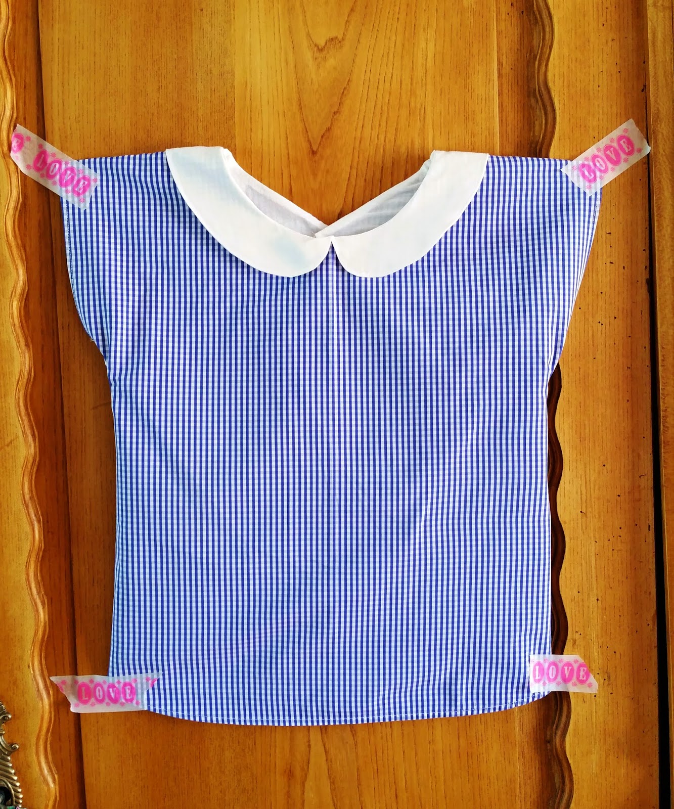 La première…. dans une chemise vichy bleu marine … A la découpe on reconnaît bien la chemises avec les manches!