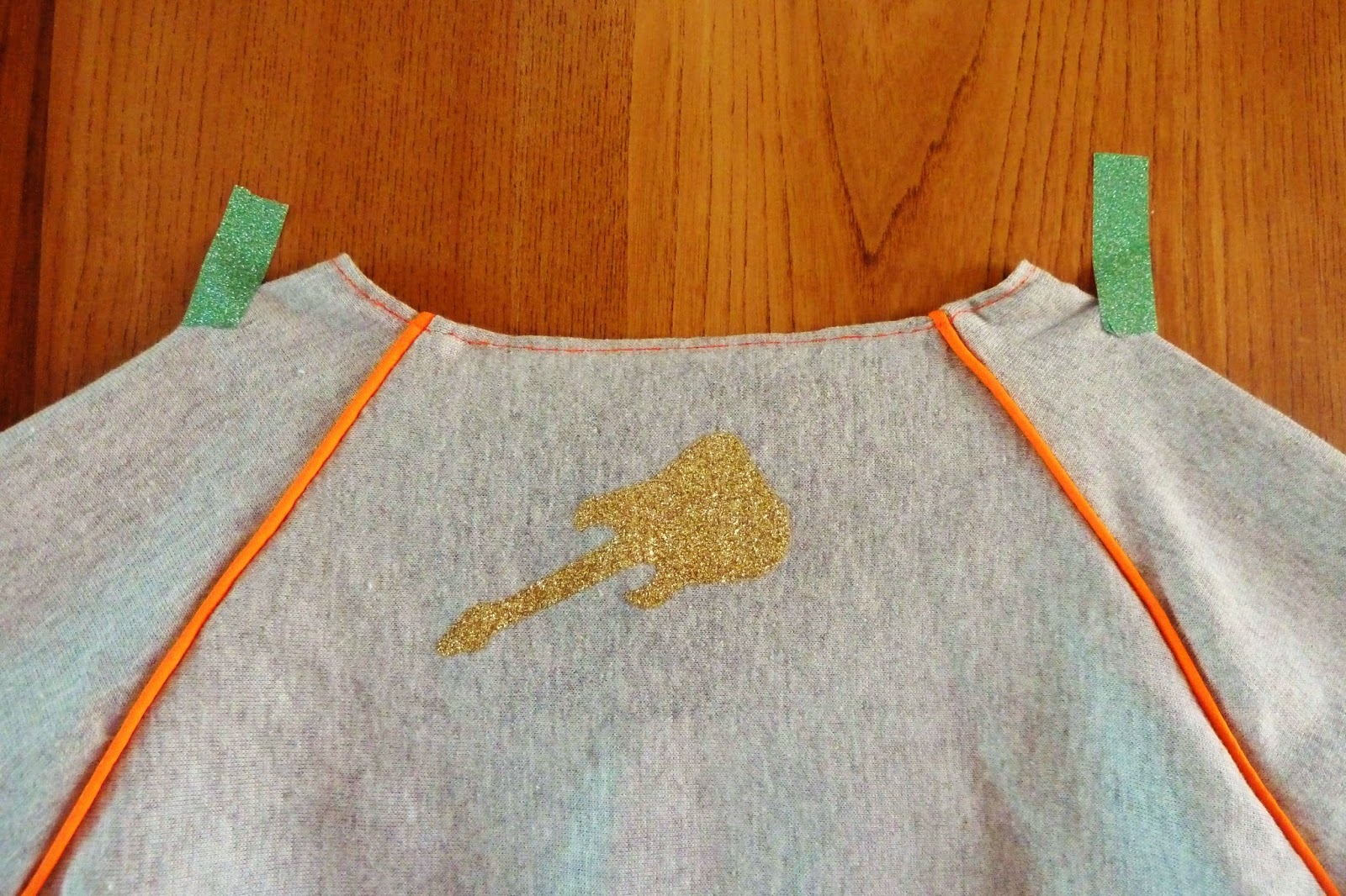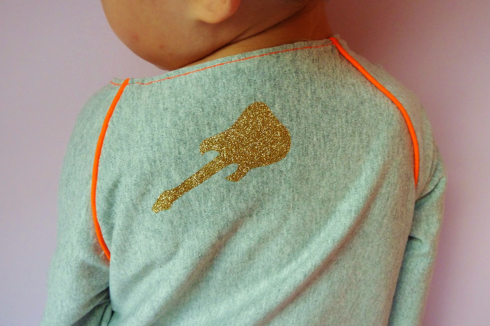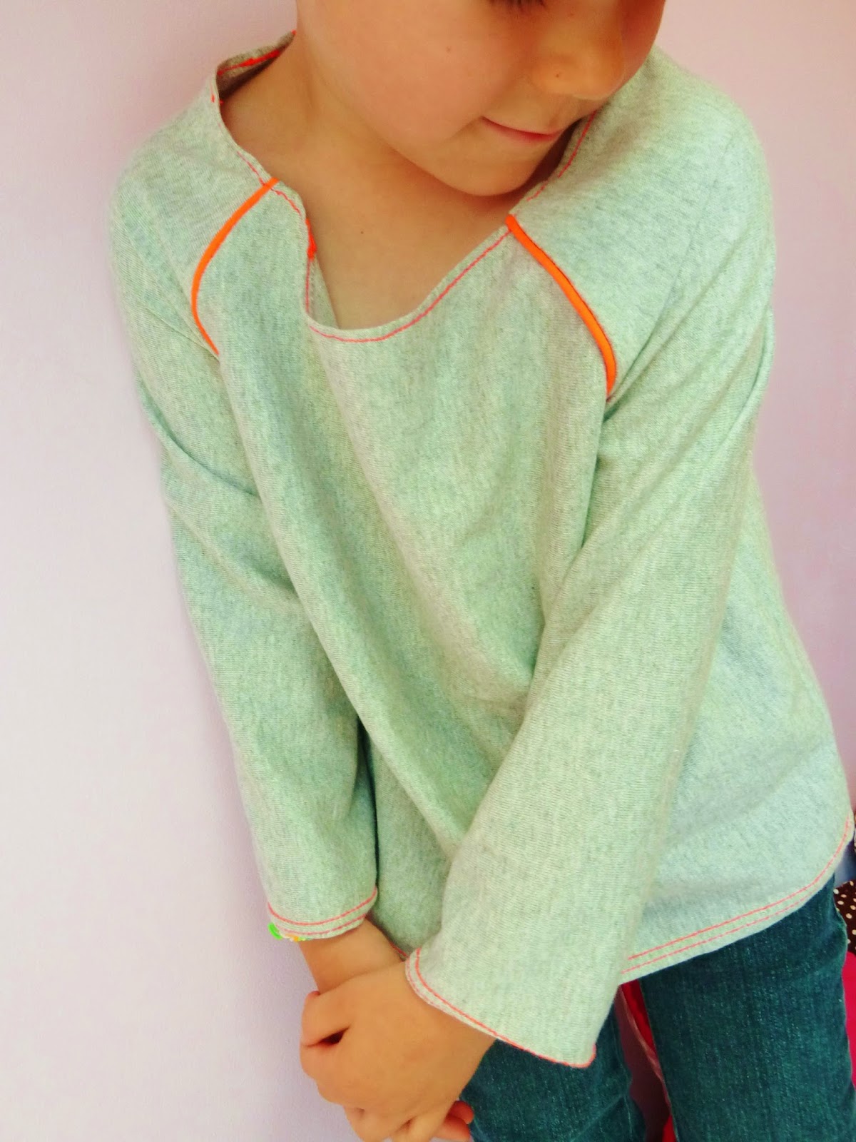 Réalisé en jersey gris un peu épais, passepoil orange fluo pour donner un peu de pep’s…
