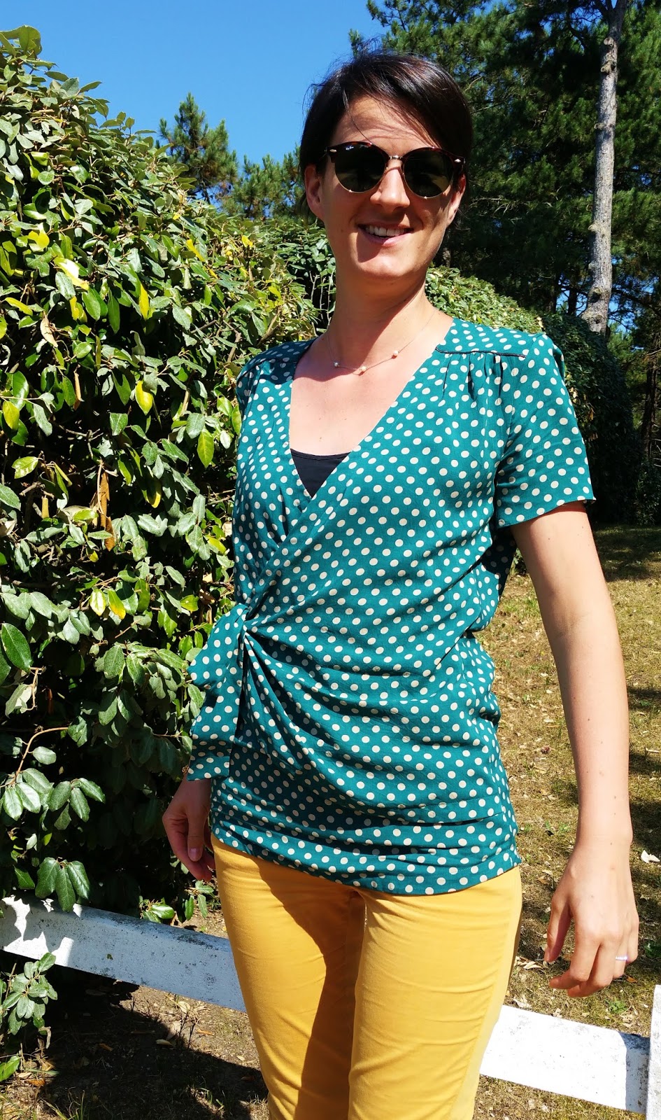 Ce modèle est magnifique, j'ai le patron, mais pas encore réalisé. J'adore le tissu choisi, il met en valeur ce joli drapé, c'est une très belle réalisation. Ravie de voir que tu as participé à cousu-main 3, hâte de voir l'émission. Perso, je ne suis sur aucun réseau social, je préfère de loin les blogs, c'est tellement plus intéressant, même si je sais que c'est un boulot de fou. Longue vie aux blogs et pour encourager, je m'abonne à la news, merci pour ce joli blog.