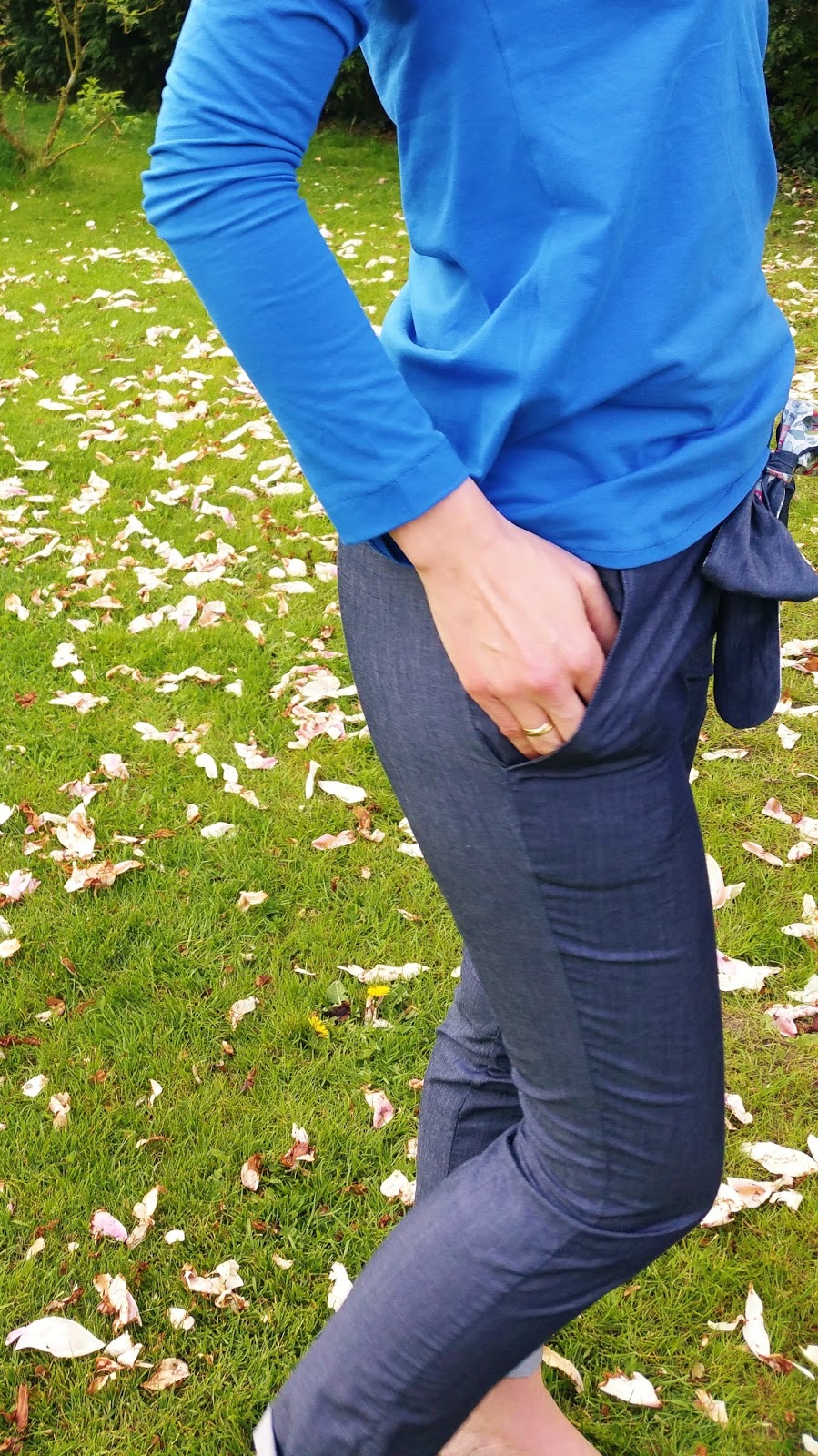 Certains n’aimeront pas les poches qui ont tendance à « tirailler » mais ces plis obliques font justement le charme de cette forme si particulière! Bon et puis en 2h le truc est cousu quoi, le pied…