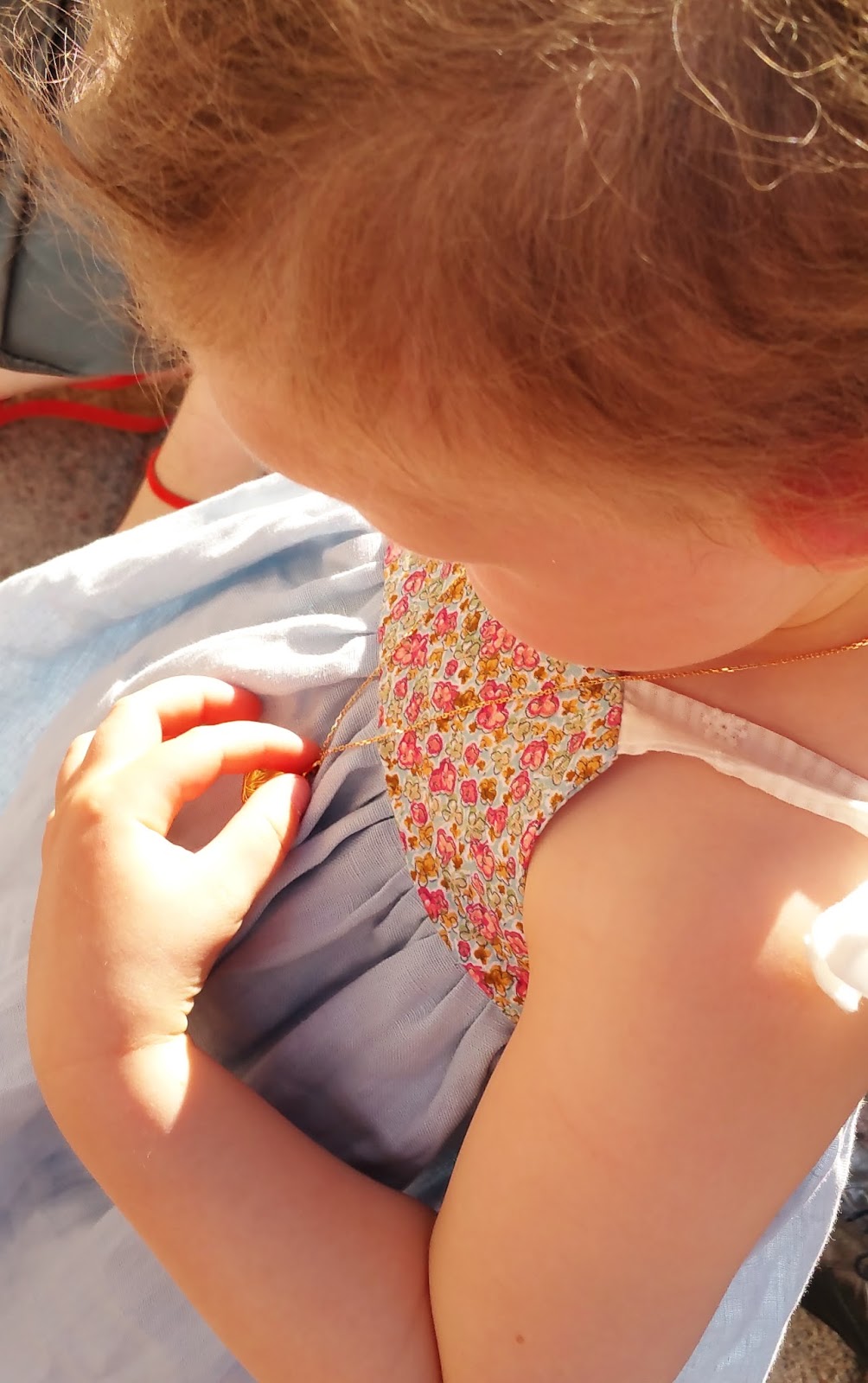Le haut à bretelles nouées sur les épaules de Citronille (Intemporels pour enfants), que je ne présente plus… Un incontournable à décliner version top ou robe, facile à mettre et juste trop craquant….