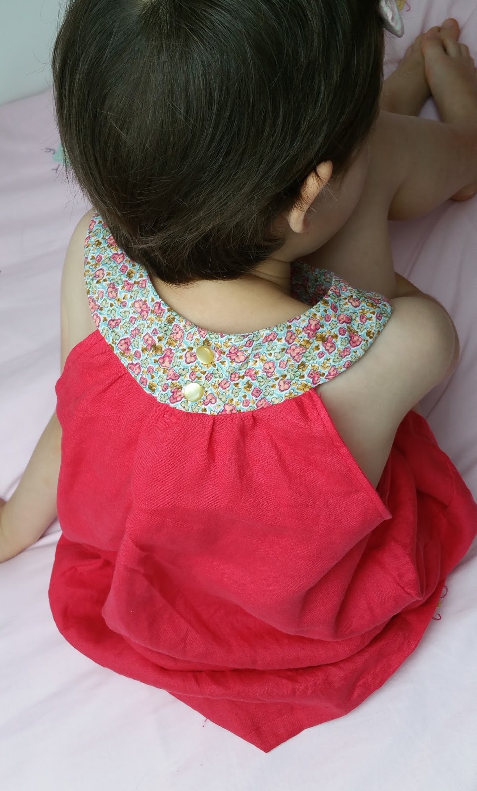 Ce modèle est assez simple à réaliser, j’ai juste bordé les emmanchures de celle de Clotilde avec du biais liberty Betsy