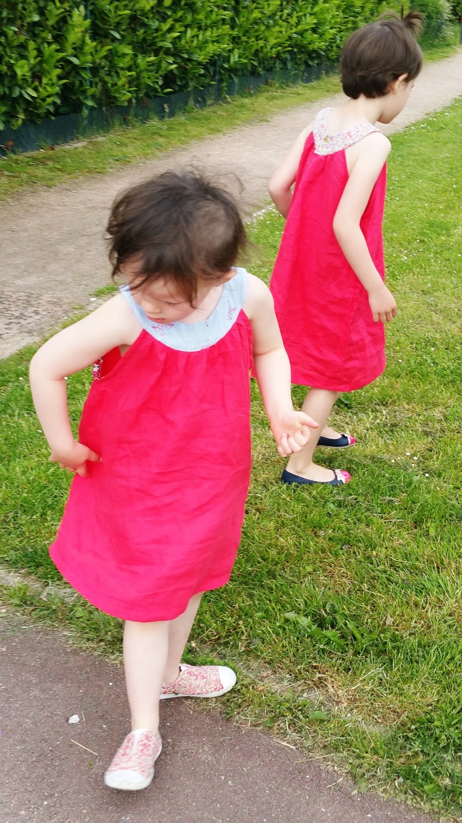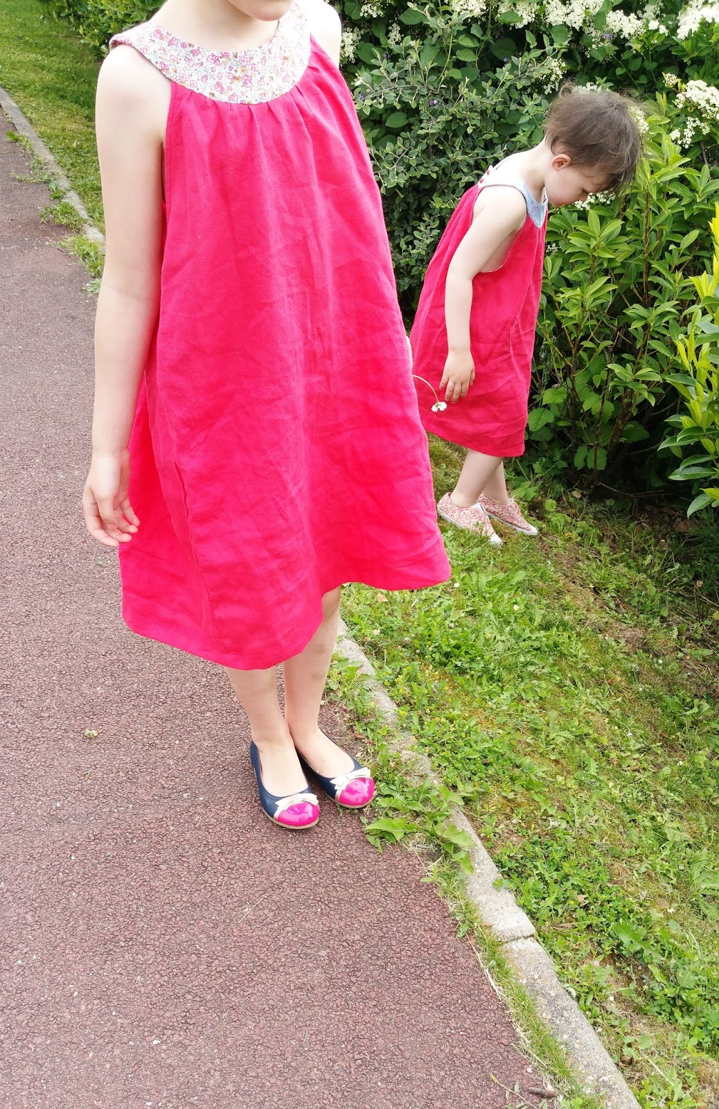 Deux robes issues du modèle de la robe à encolure ronde de Citronille cousues dans un sublime lin fuschia de chez Tissus de rêve canonissime!!!