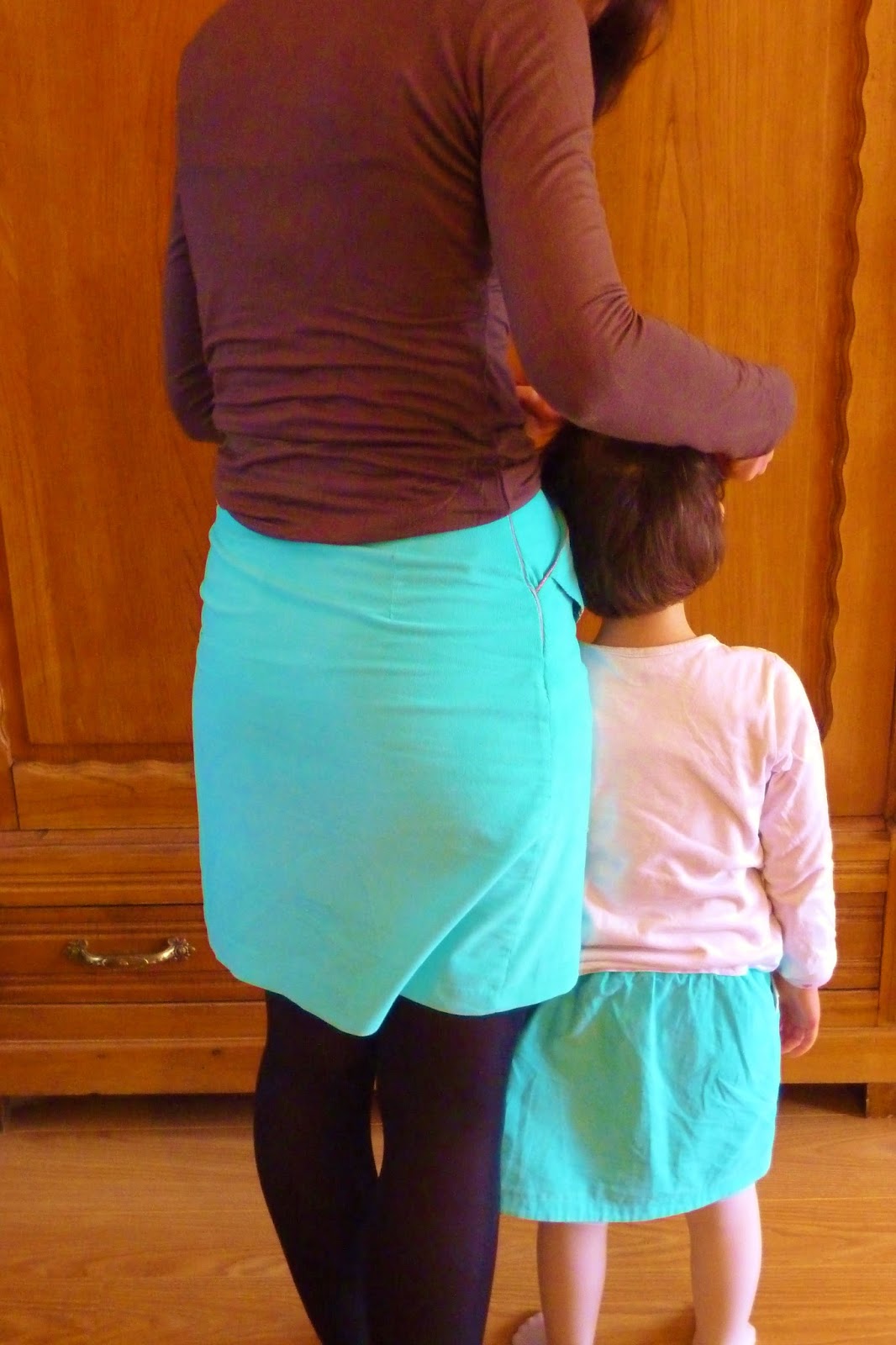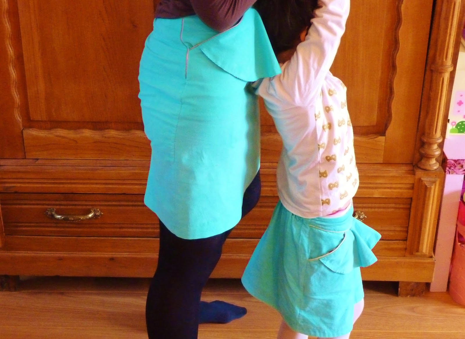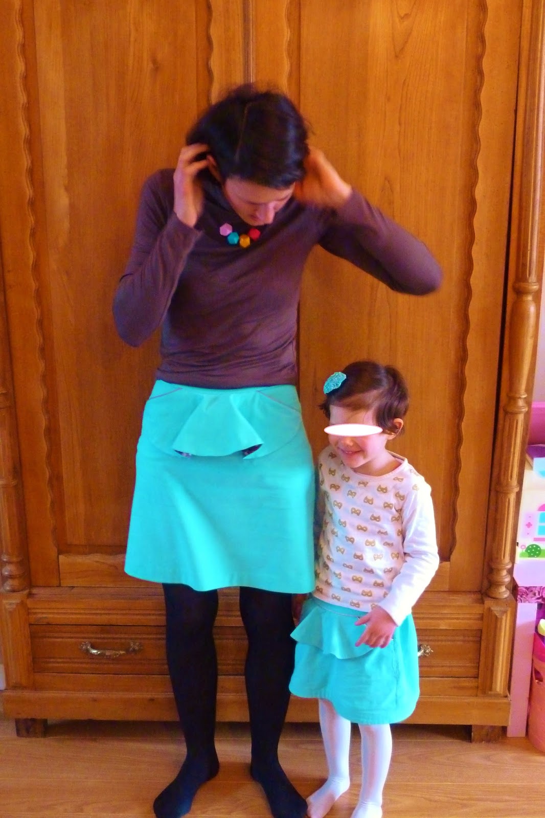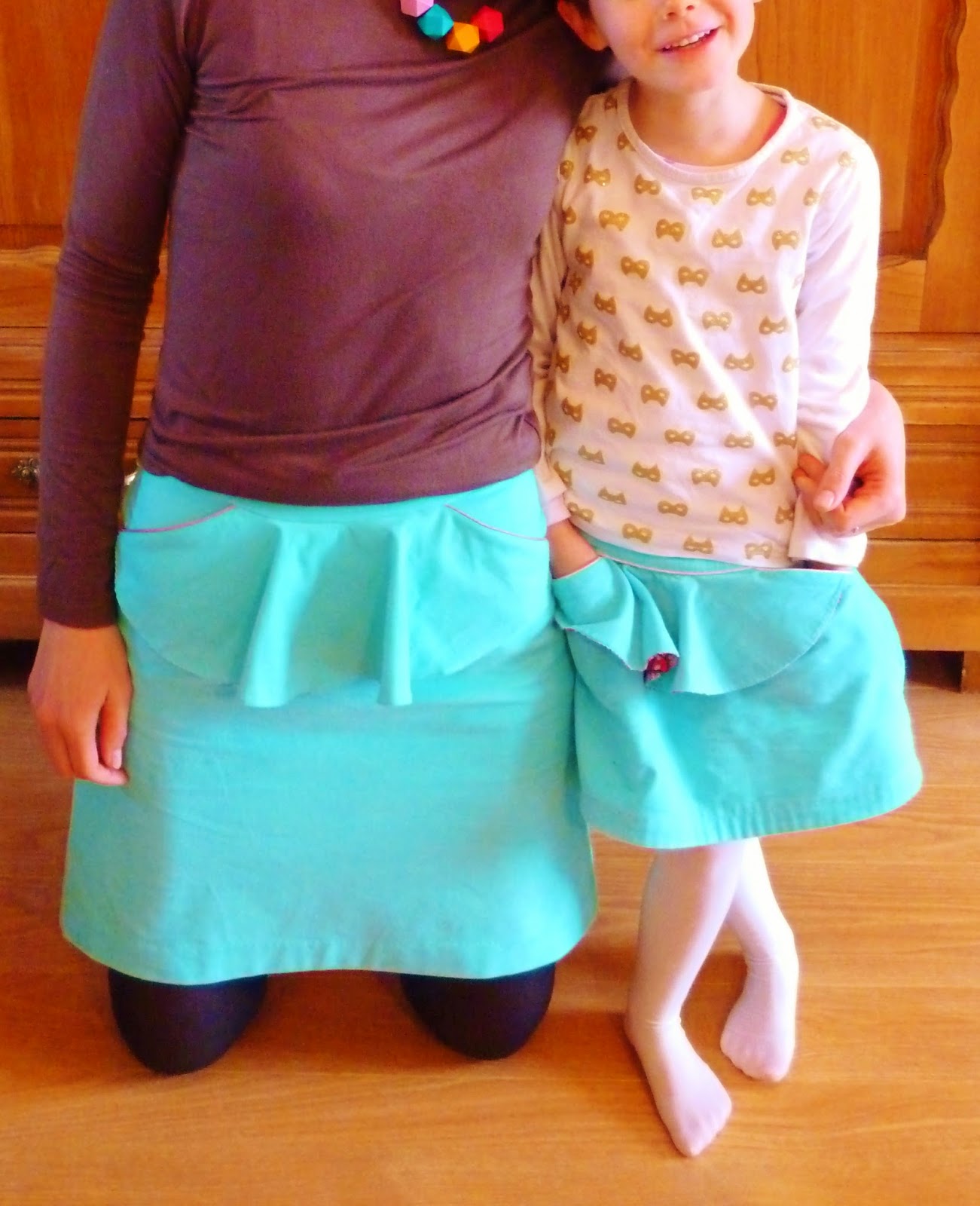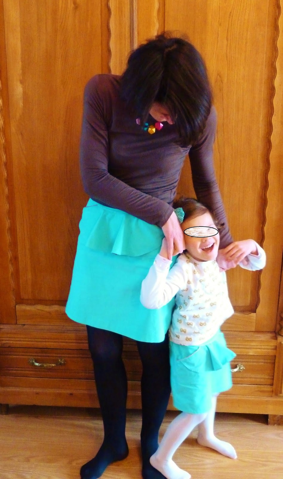 Tres jolie jupe, et quel joli duo!! Elle devait etre fiere ta fille d'avoir la meme jupe que maman!