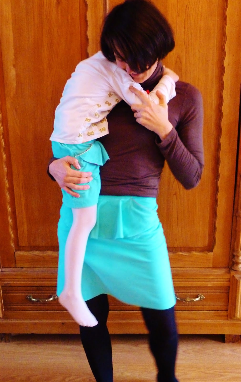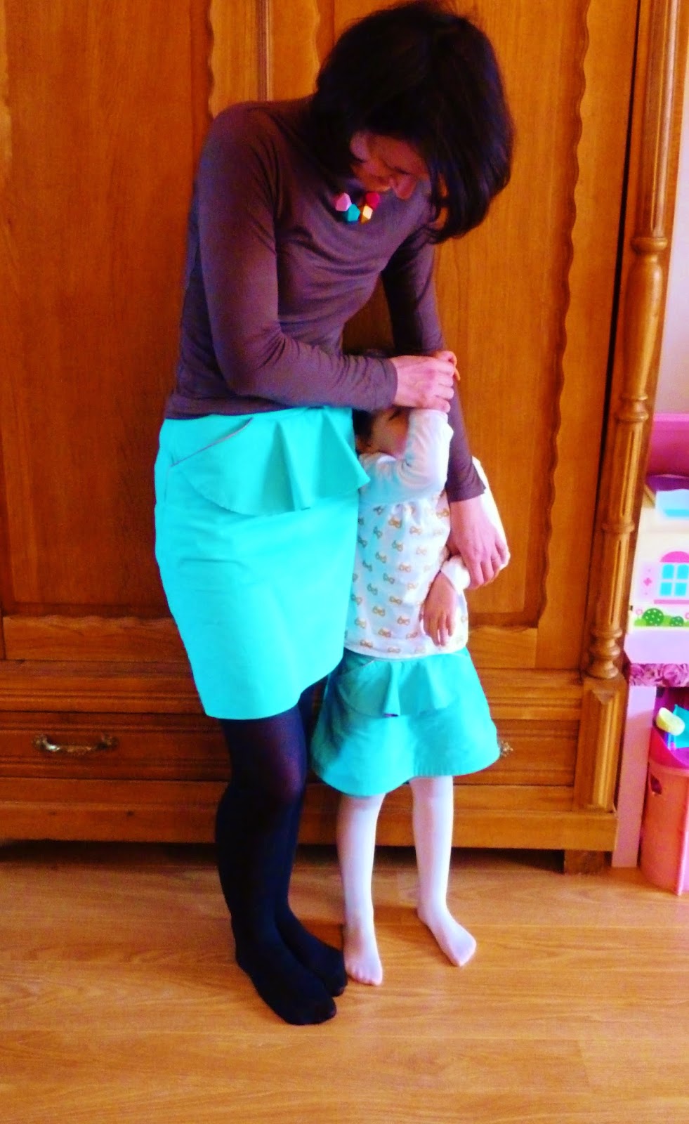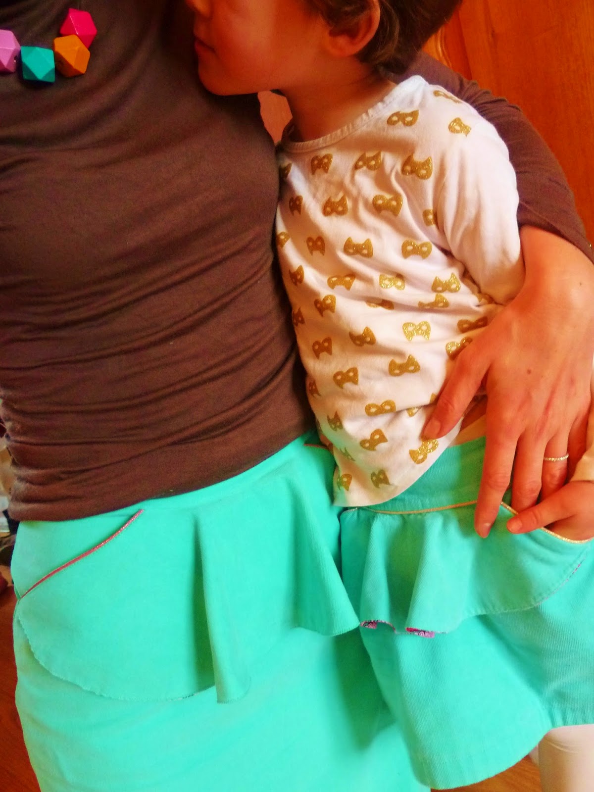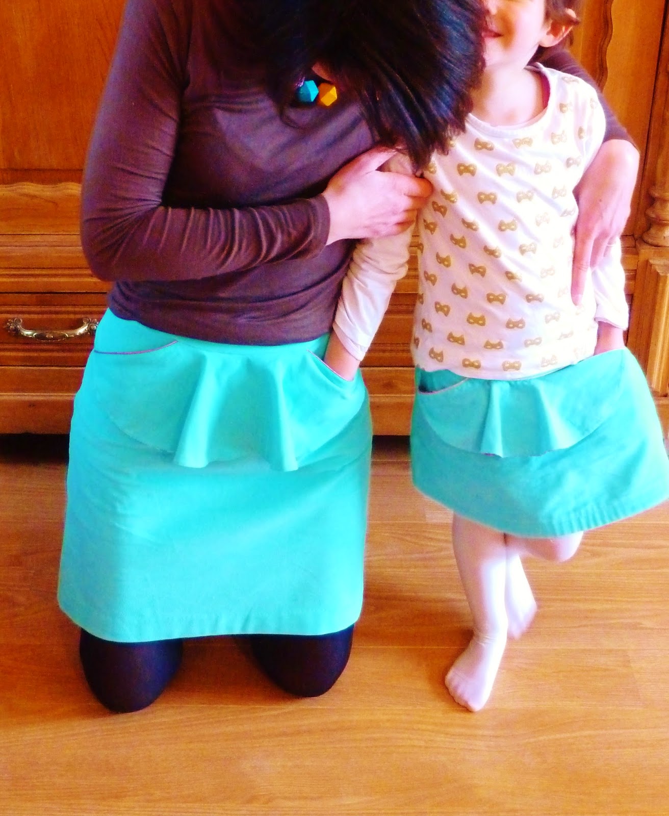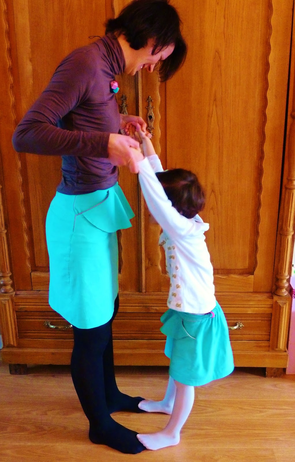 Tres jolie jupe, et quel joli duo!! Elle devait etre fiere ta fille d'avoir la meme jupe que maman!