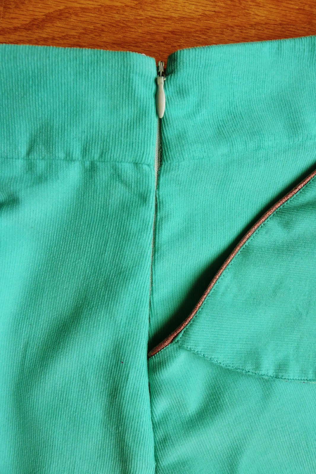 Le détail du revers du volant et les poches passepoilées avec du passepoil bronze que je n’ai pas osé mettre au niveau de la ceinture pour éviter le côté too-much!