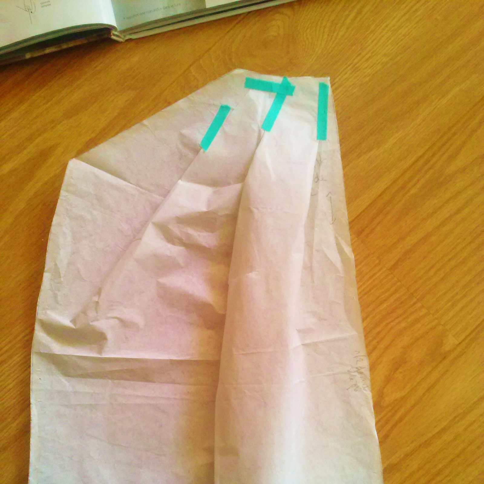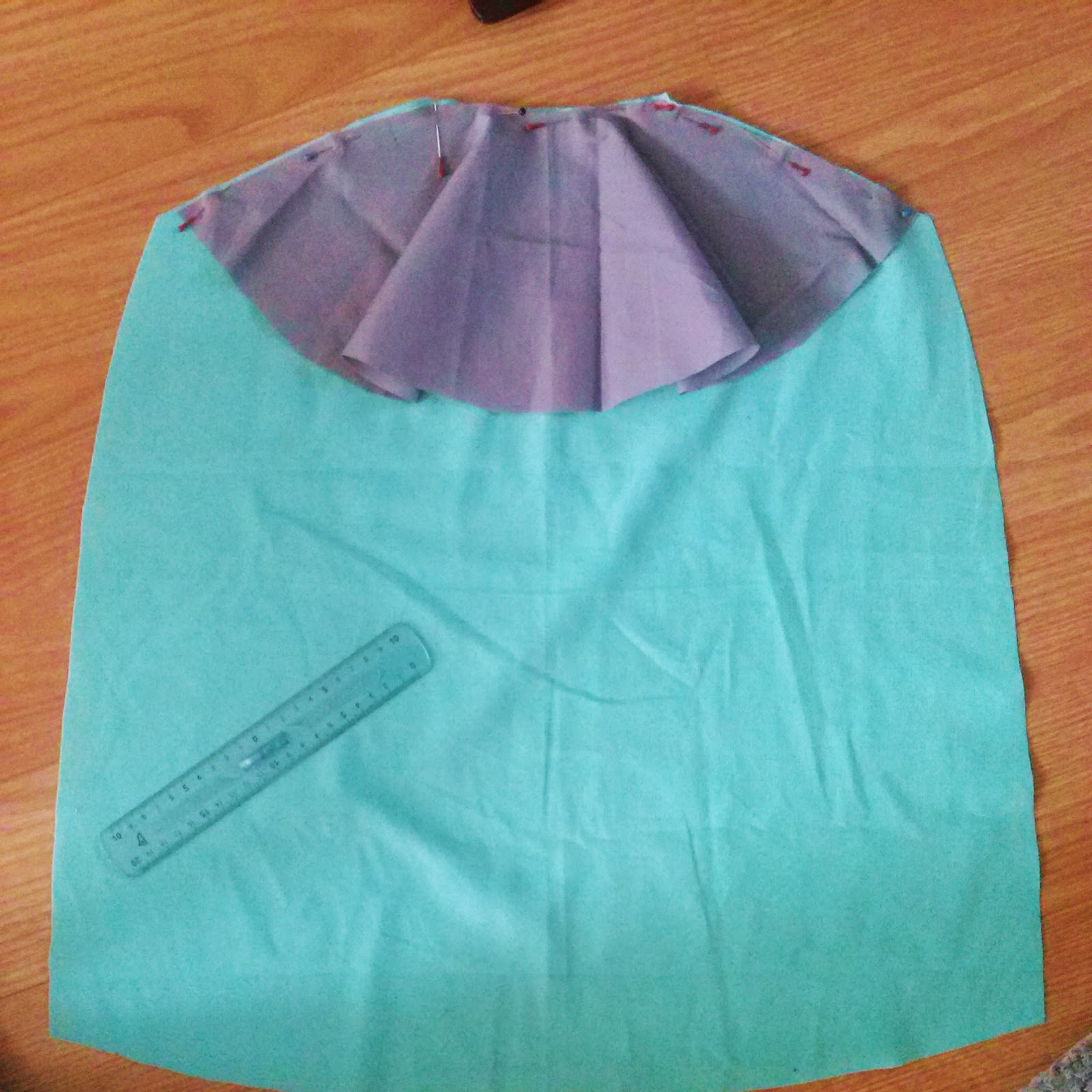 2) Faire le volant : j’ai repris le volant de la mini-perle, je l’ai découpé, collé pour l’agrandir et je l’ai redessiné : plusieurs toiles plus tard, j’avais mon volant!! NB pour la prochaine : thermocoller la doublure du volant qui a tendance à s’aplatir au fur et à mesure de la journée et le rallonger/élargir un peu