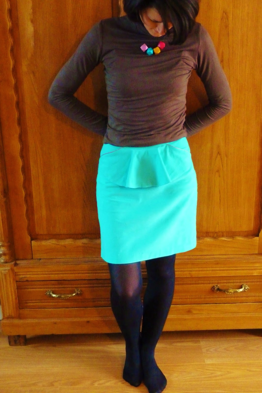 Superbe ce duo! J'adore l'originalité de la jupe et sa couleur. Par contre je ne me sens pas encore capable de modifier un patron. Merci pur ta visite sur mon blog. Bonne année!