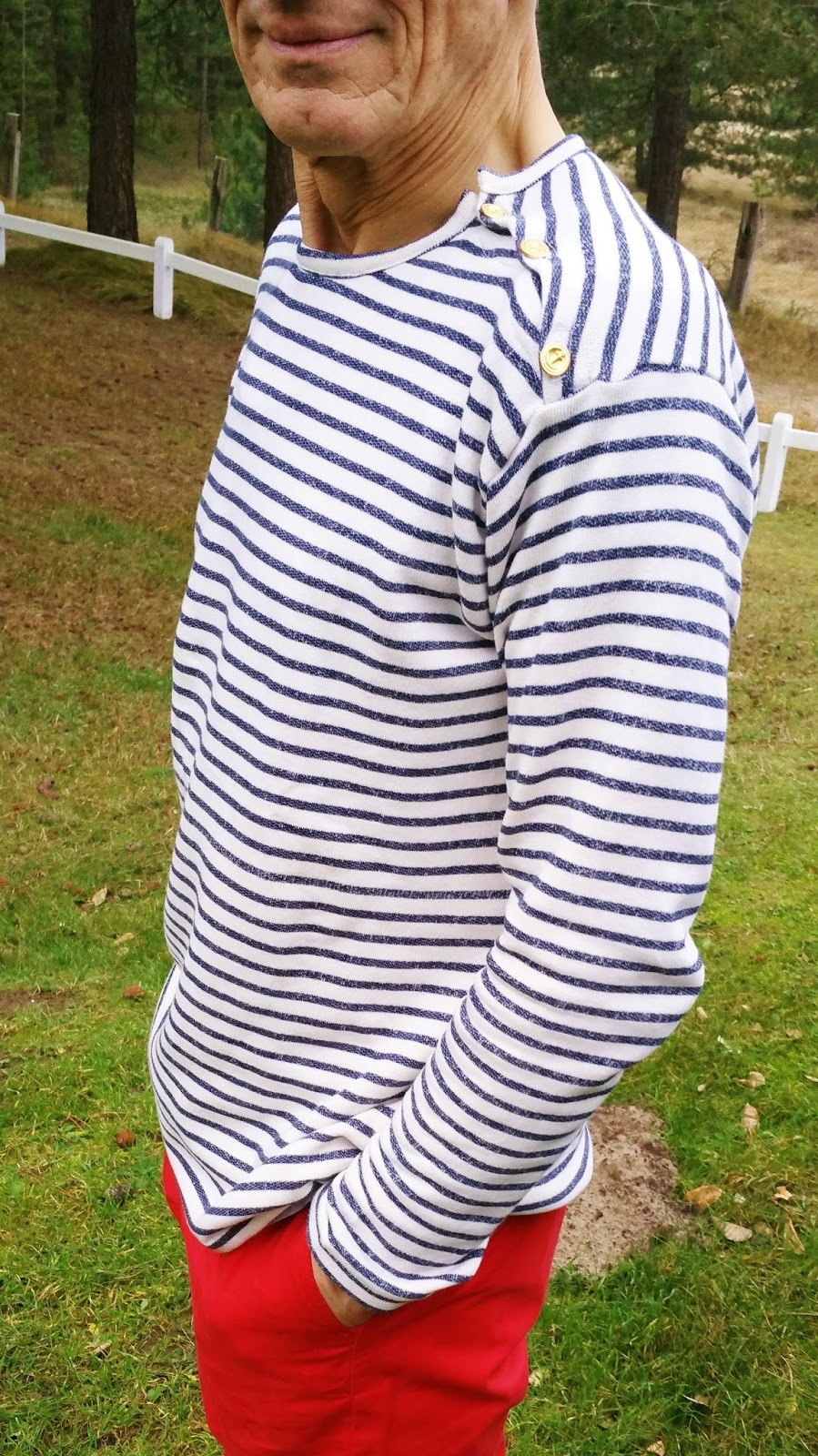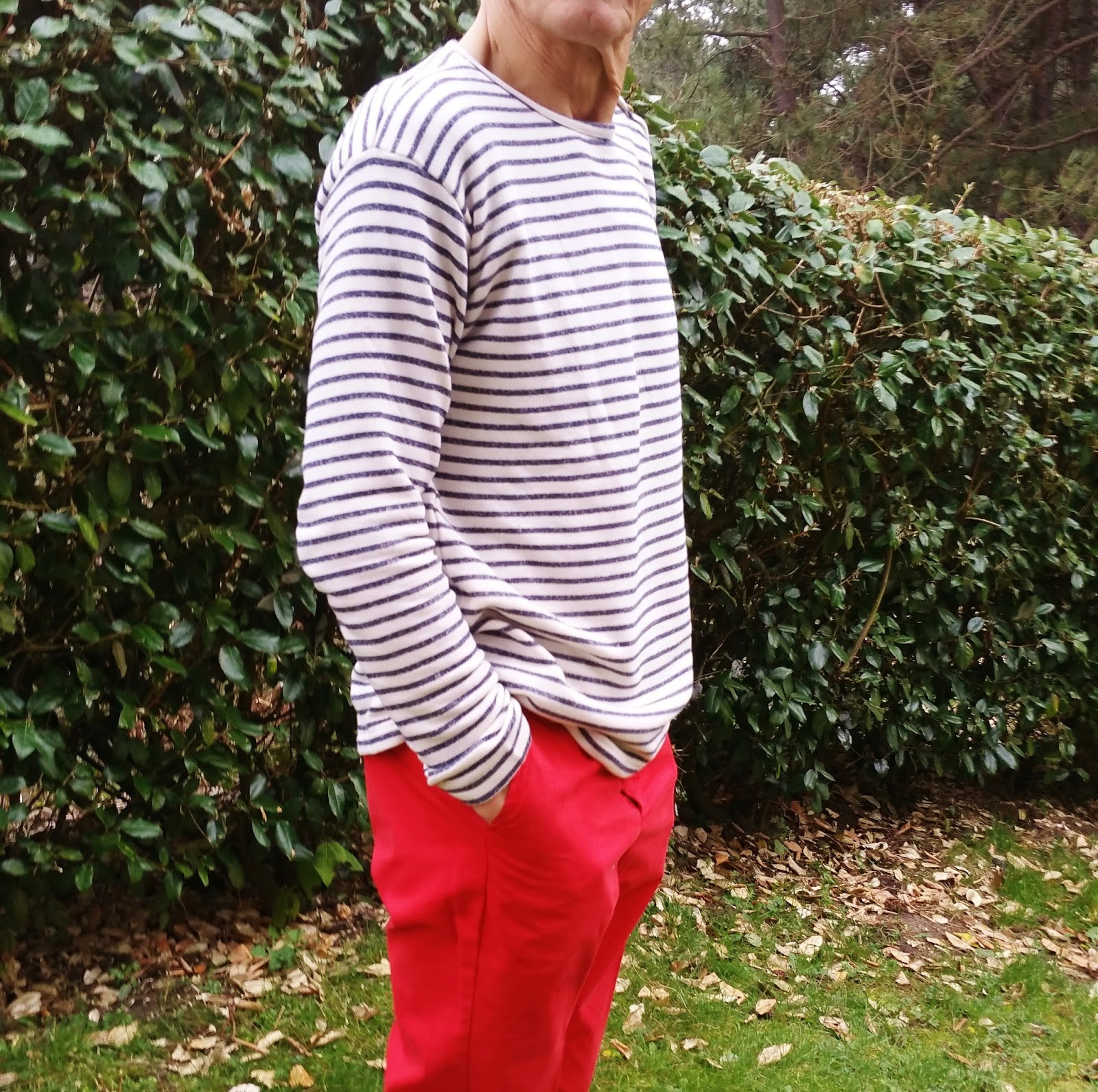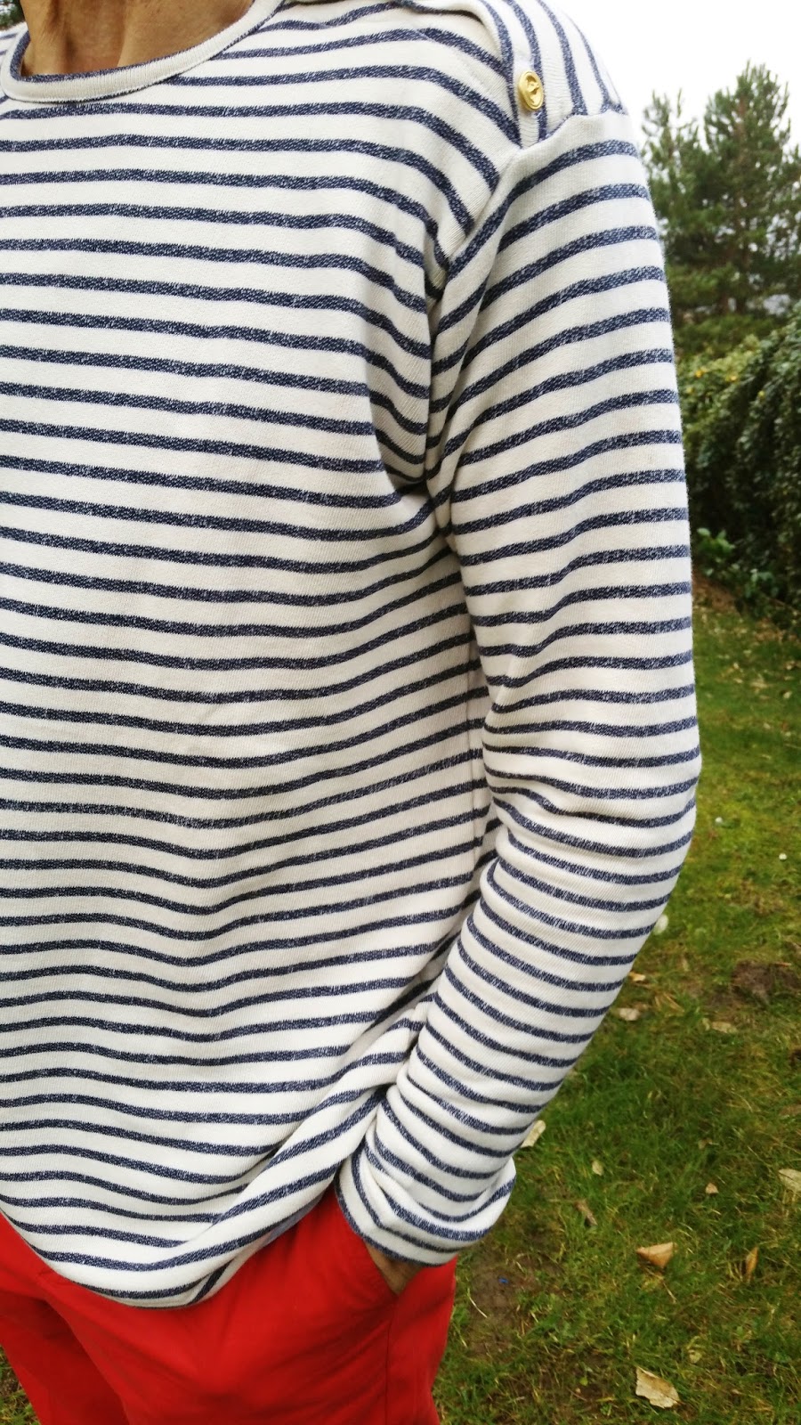 J’ai tout de suite pensé à un tissu marinière pour mon papa, pour un style un peu différent mais qui allait à coup sûr lui aller!!!