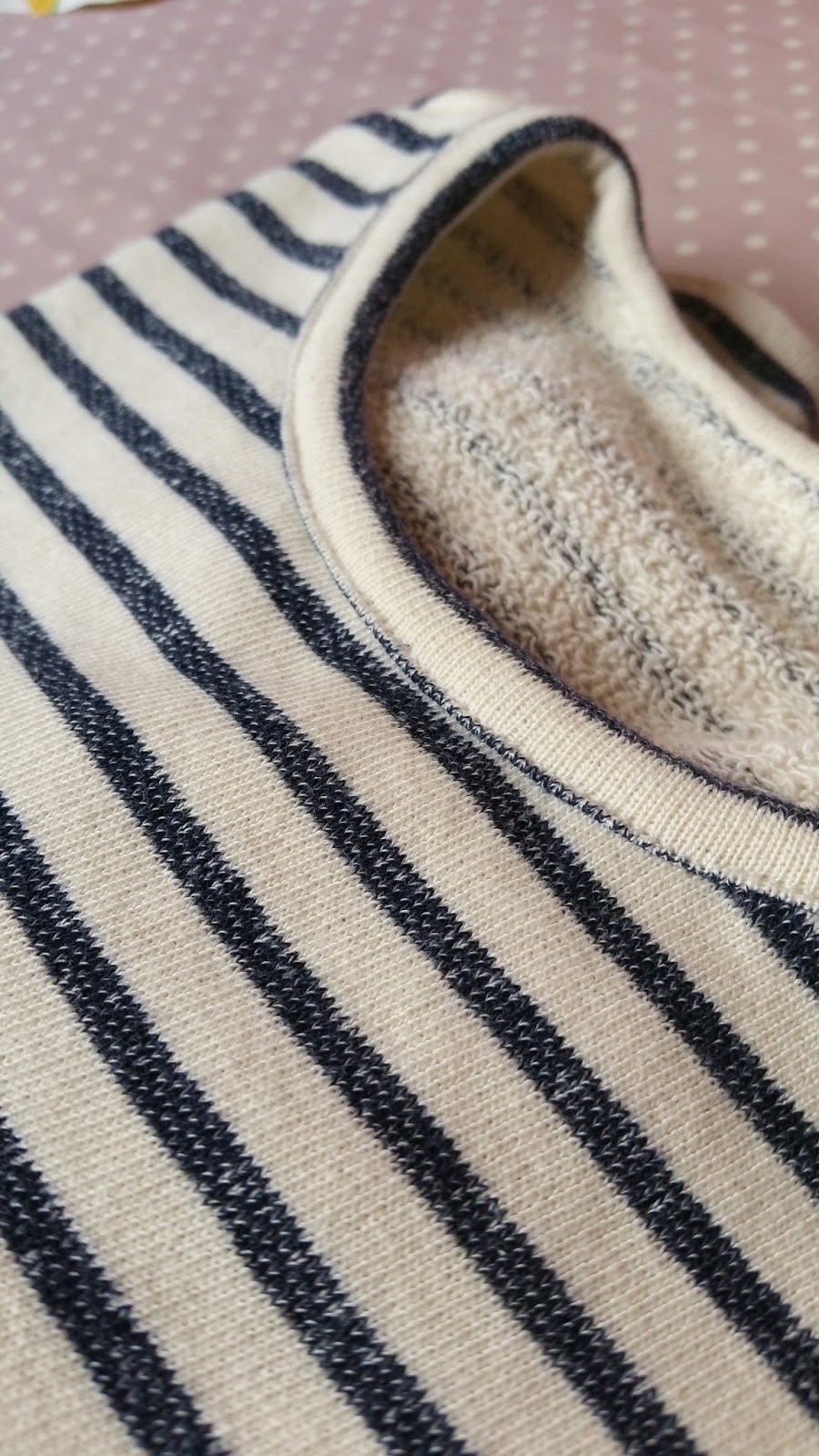 On démarre les festivités avec le patron de Aime comme Matelot, un patron assez simple à réaliser si ce n’est le travail du jersey au niveau de l’encolure qui doit être impeccable.