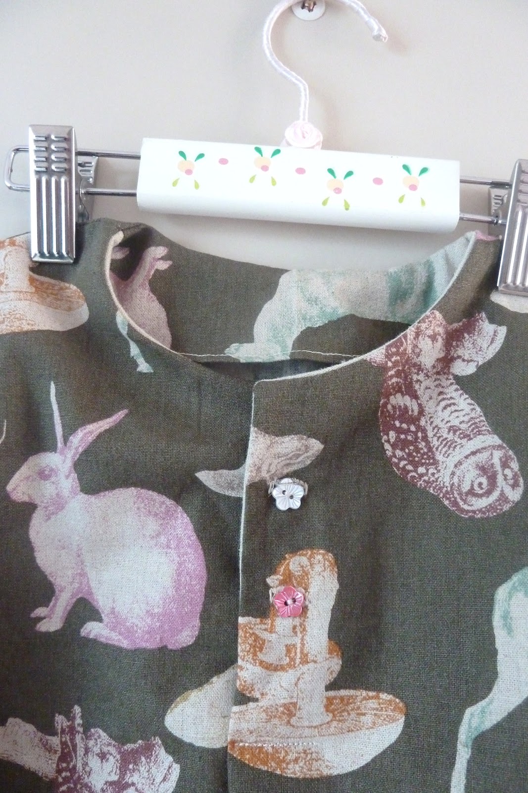 Et voilà une autre tunique que j’adore particulièrement!! Surtout le tissu japonais « forêt kaki de kokka » de Ma Petite Mercerie. Il a une très belle tenue, vous ne trouvez pas?