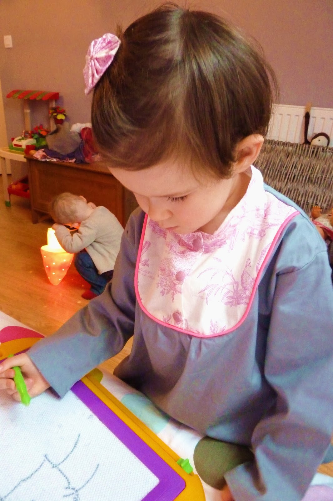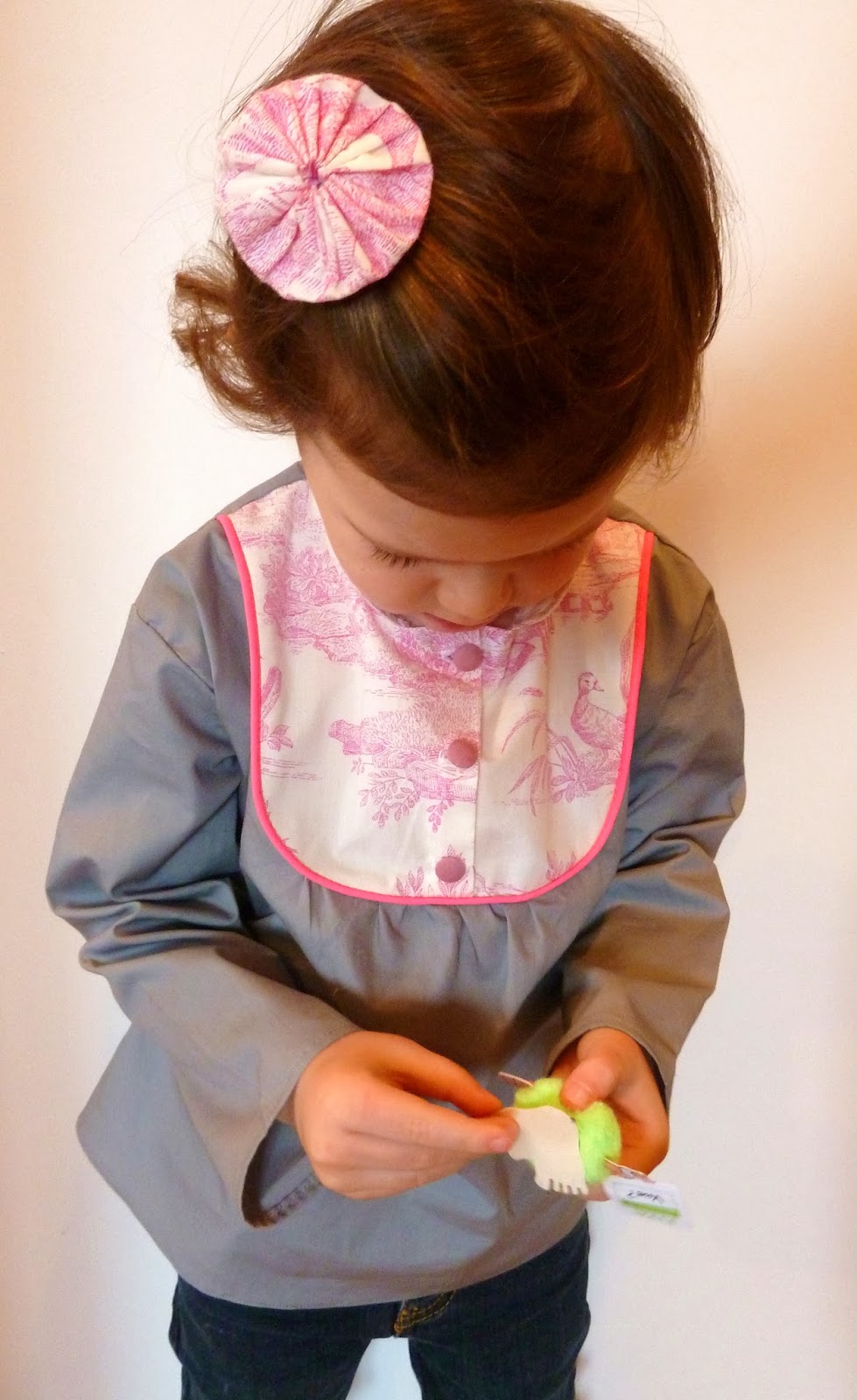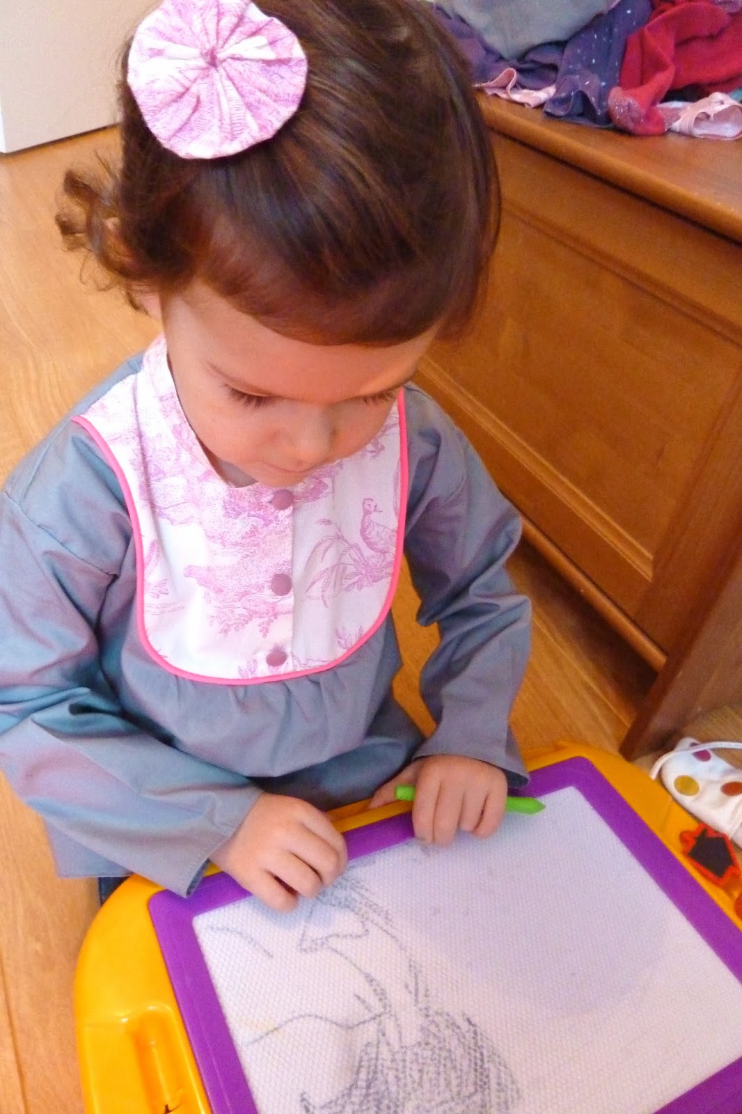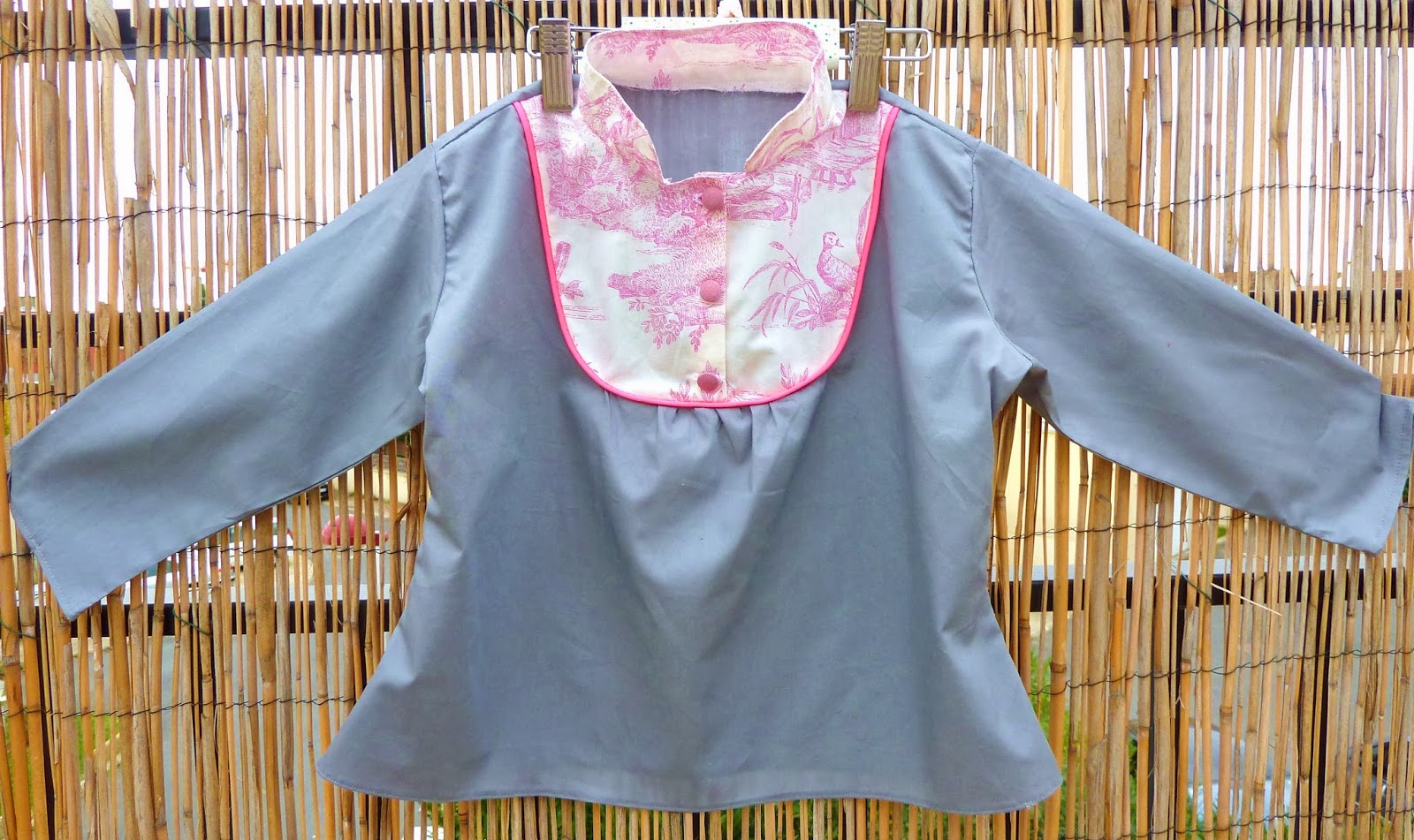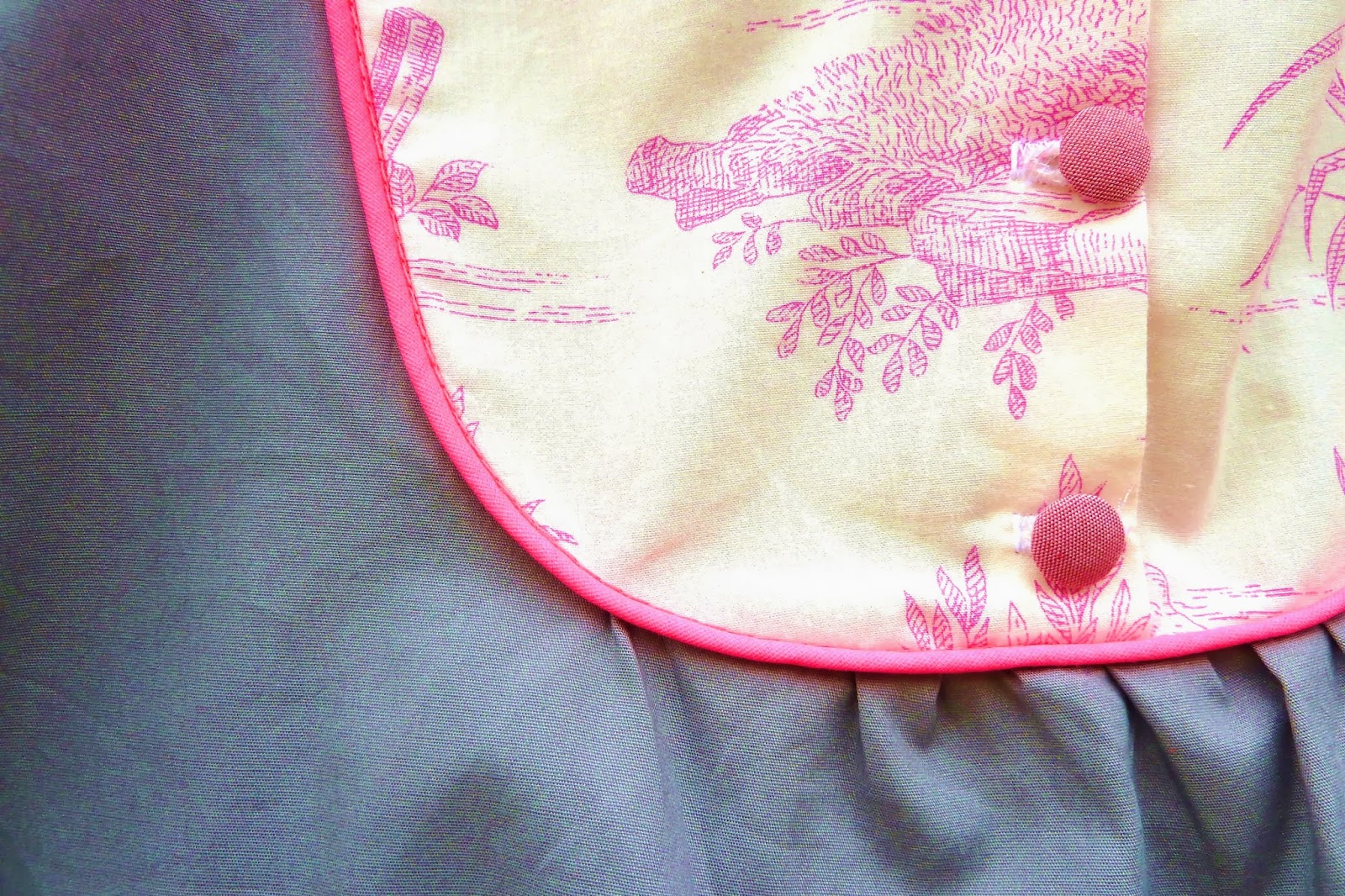 Sympa ce passepoil et son association avec le tissu style toile de jouy. C'est très joli sur ta petite.