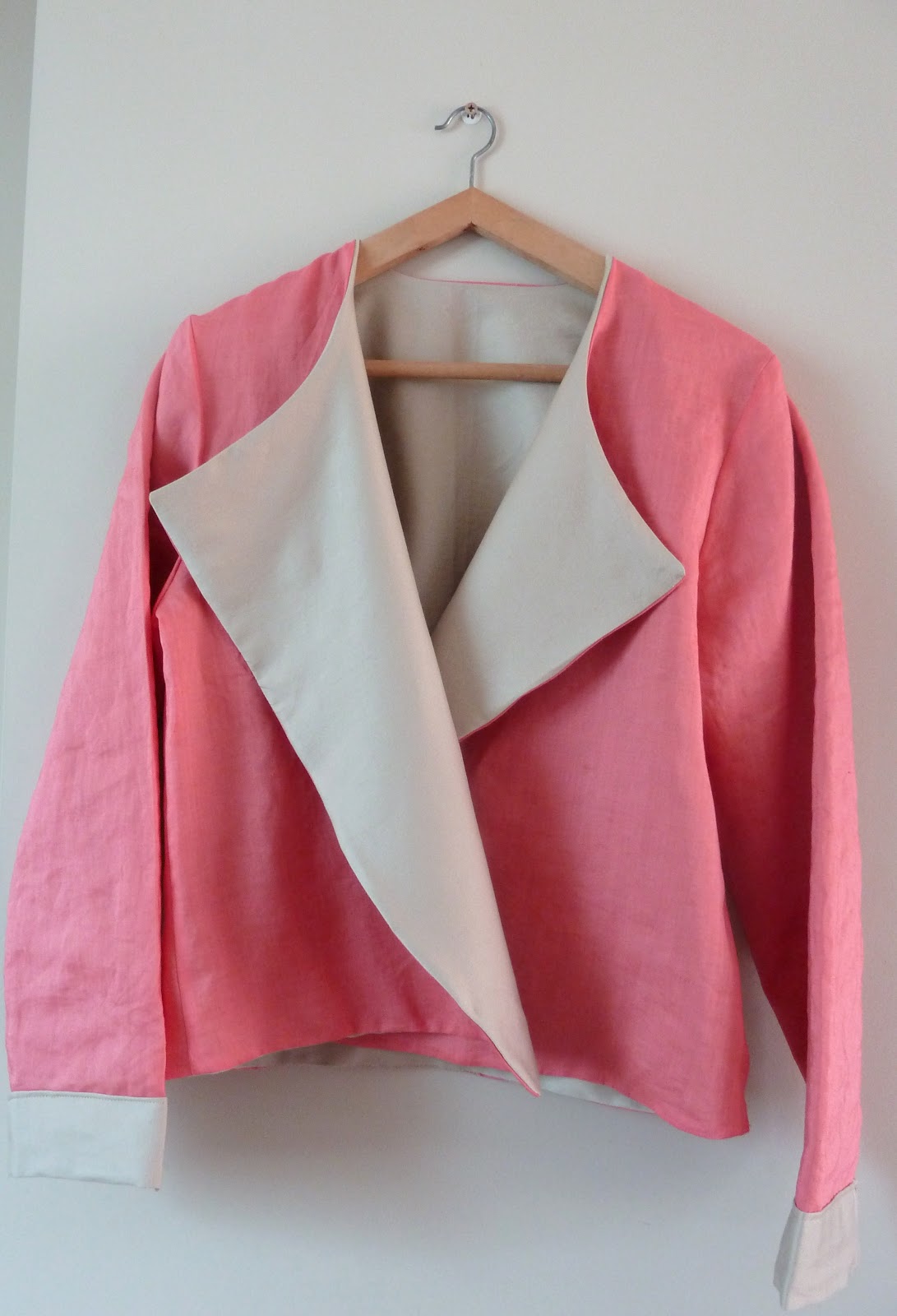 Et oui, pour ma première veste j’ai décidé de me lancer dans un modèle très simple tiré du livre »Coton, lin et liberty ».