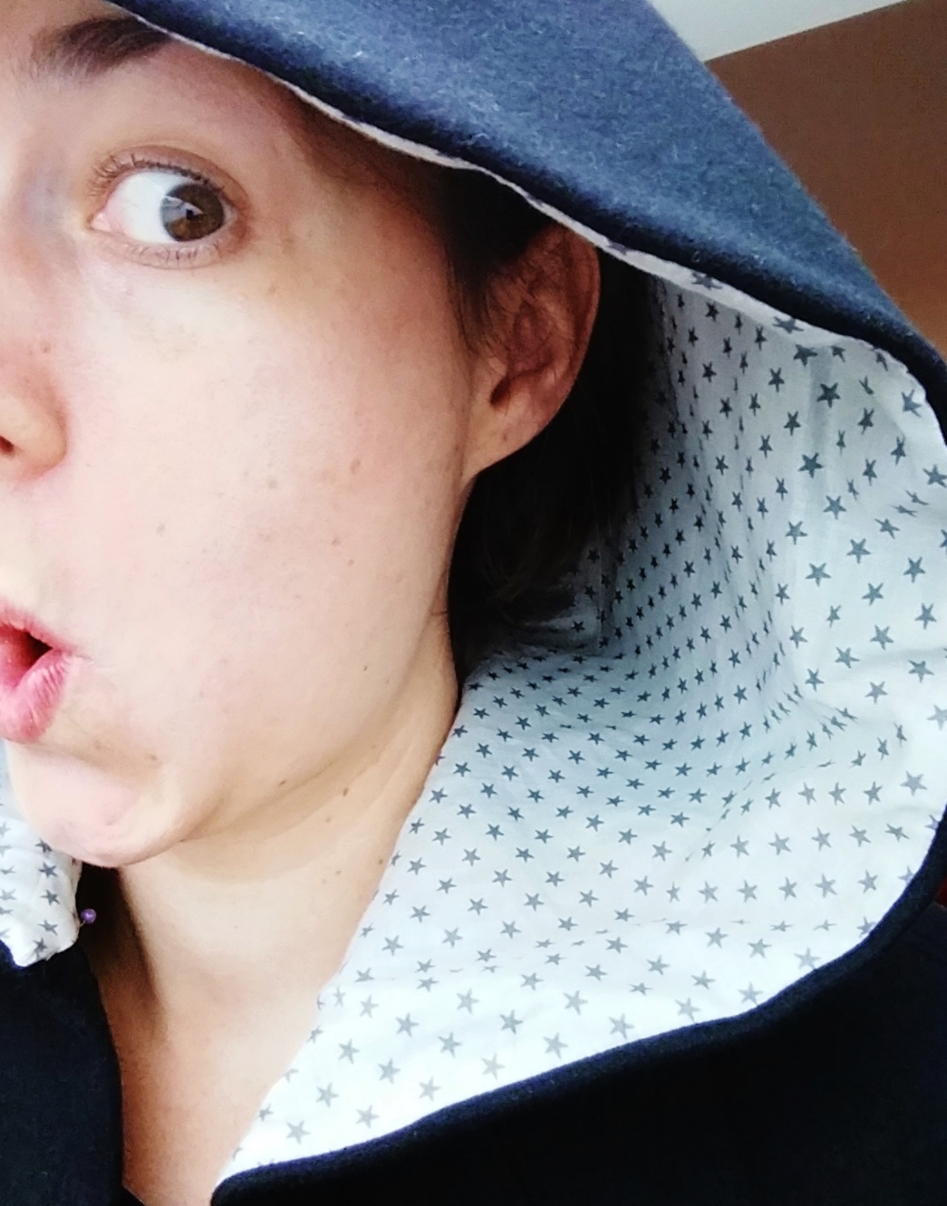 Et zoom sur la doublure de la capuche, que j’ai changé!