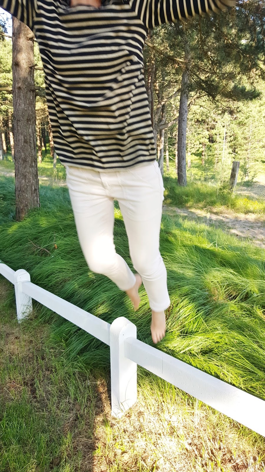 Voilà à quoi s’est résumé mon occupation majeure pendant mon enfance : tenter de faire le tour du jardin debout sur cette barrière… Cette même barrière sur laquelle mes filles reproduisent (ou tentent!!) la même chose!!