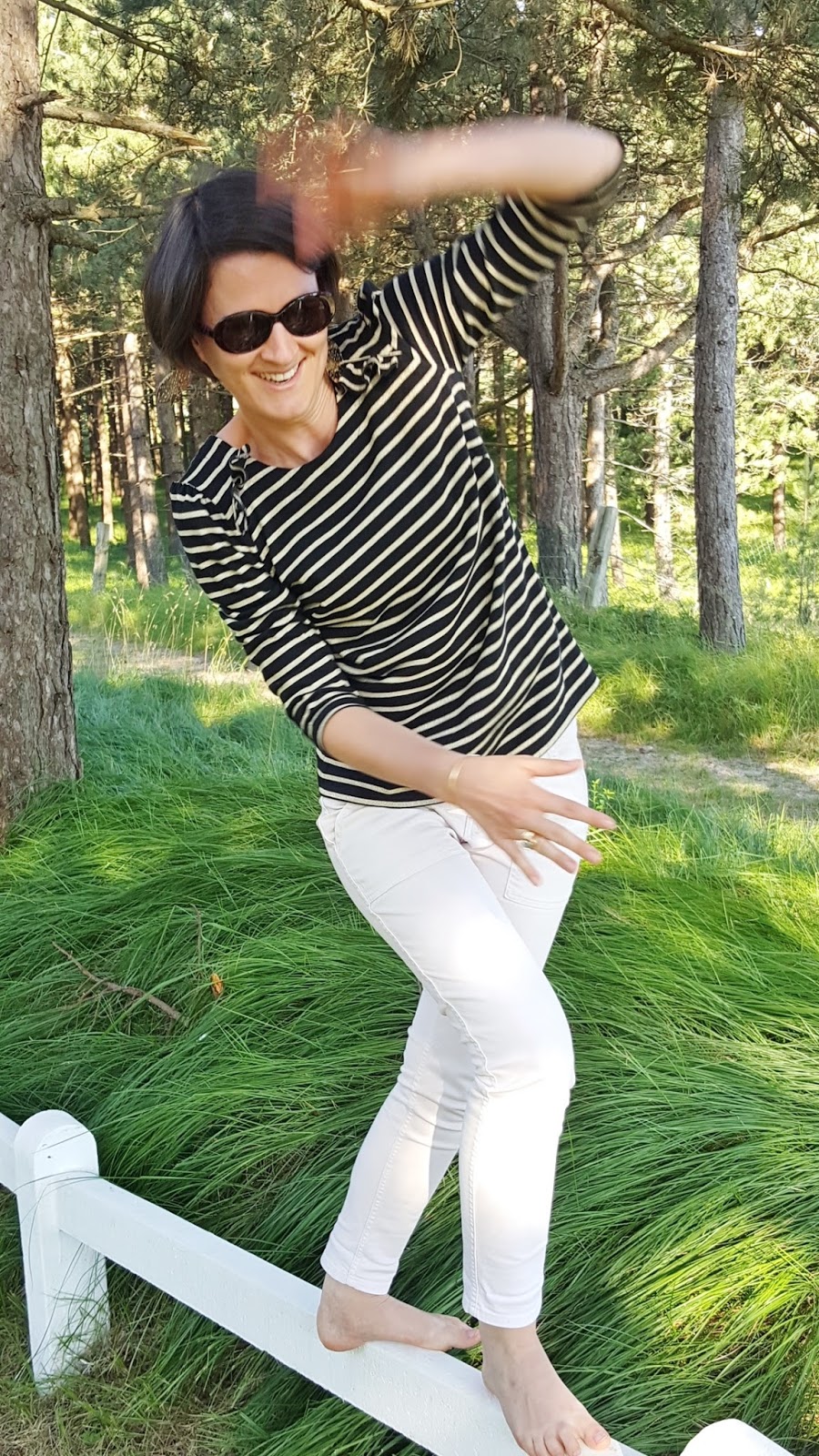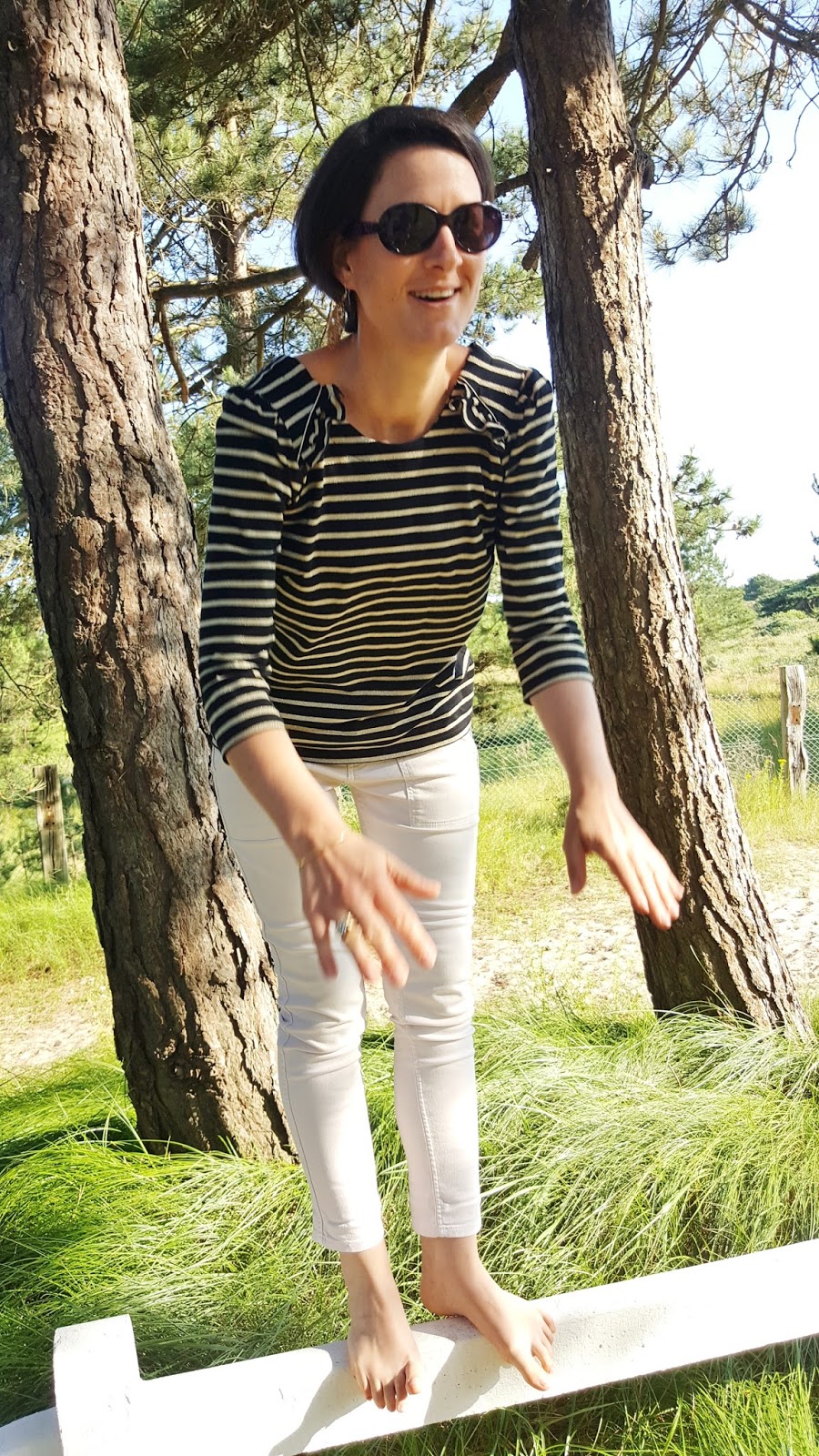 Et évidemment le bas de la blouse et des manches est droit et respecte totalement les rayures, excepté dans le dos à cause de l’arrondi du bas!