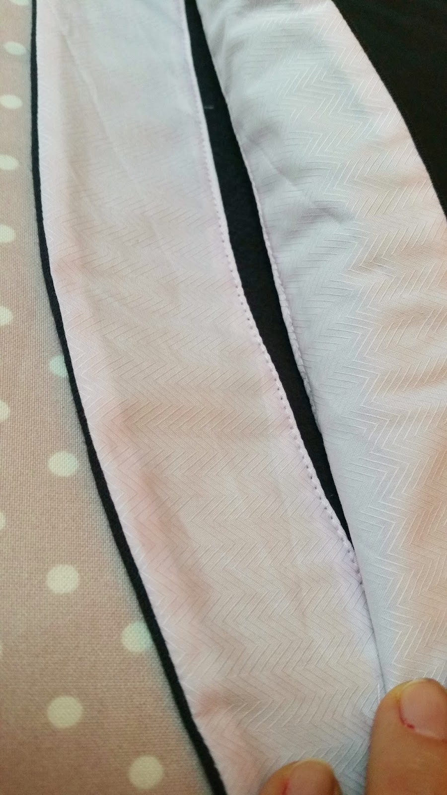Le patron prévoit un joli ourlet rapporté assez large, une très jolie finition en passant! On découvre mieux le détail de cette jolie popeline aux motifs à chevrons…