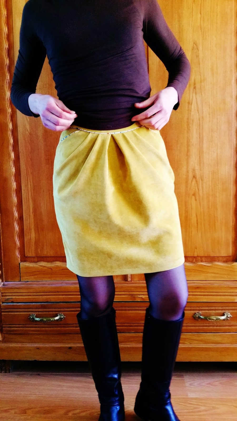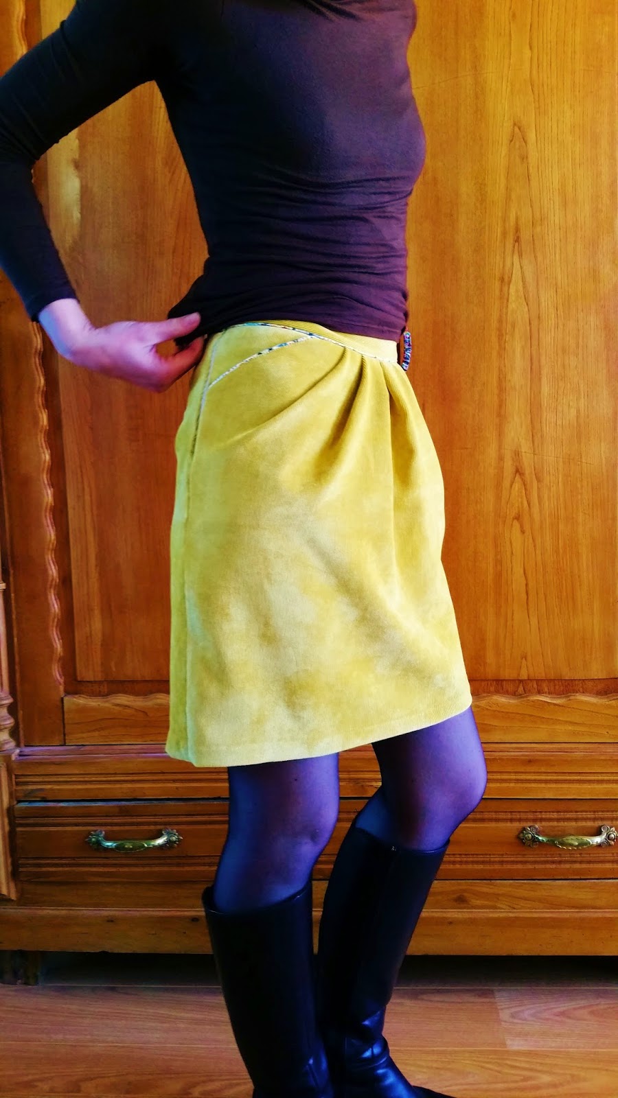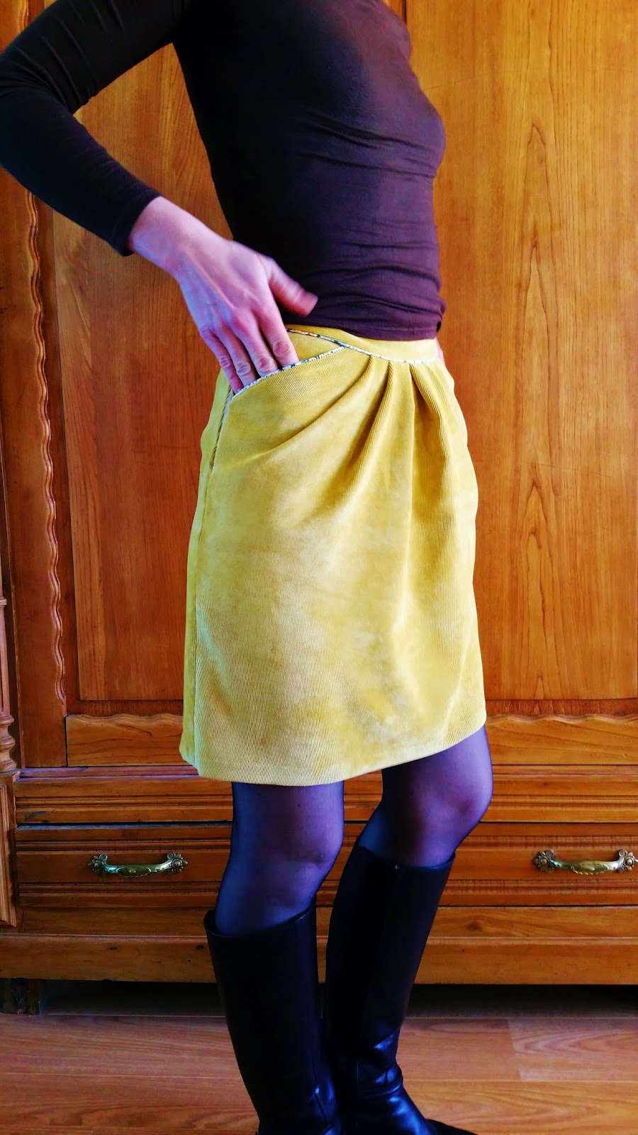 Bottes mais j'aime aussi enoooormement toutes sortes d'escarpins mais il faudrait des bouts ronds en fait avec cette jupe (…trop drôle la comparaison dadame)