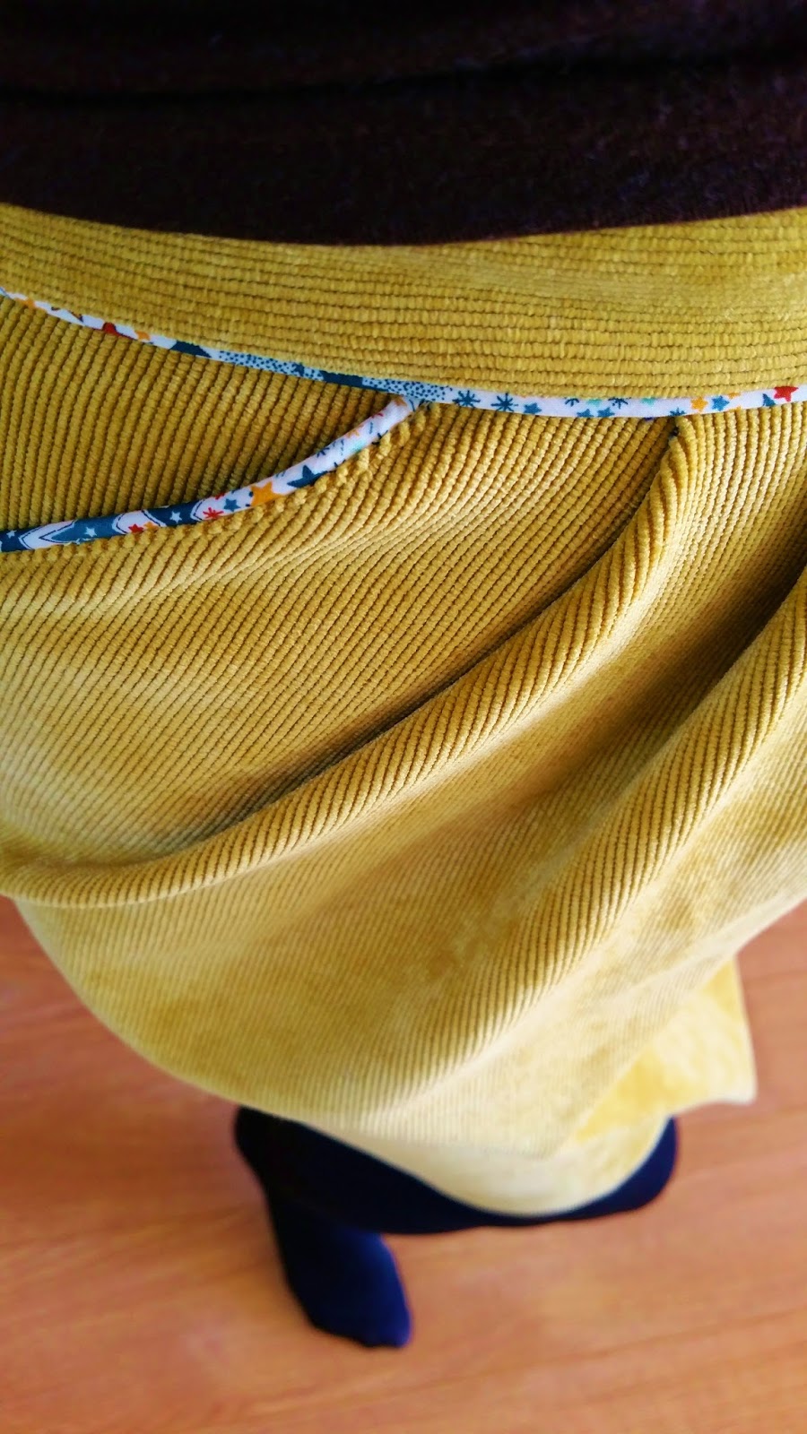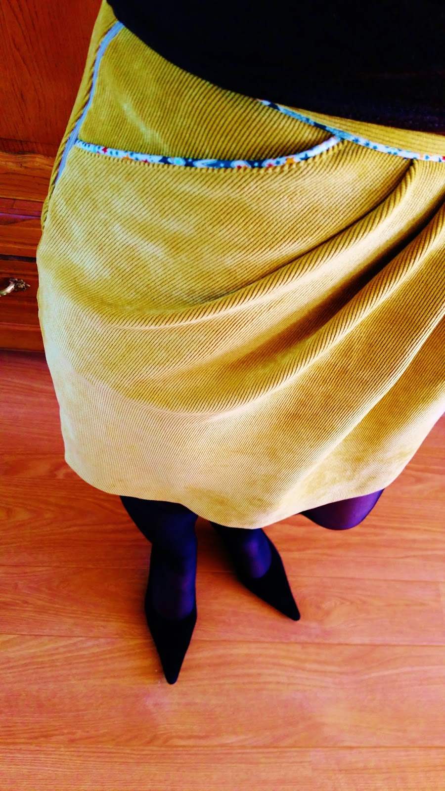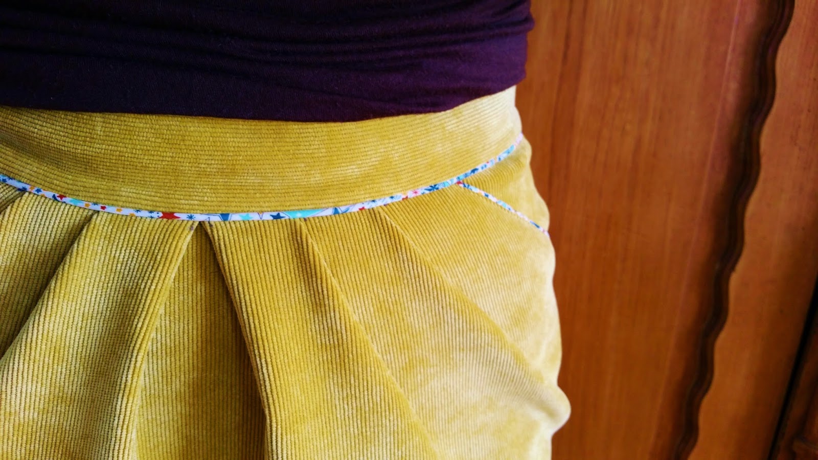 Voilà donc la dernière perle de nacre en velours moutarde et passepoil liberty maison! Elle est toute gaie, je l’adore!