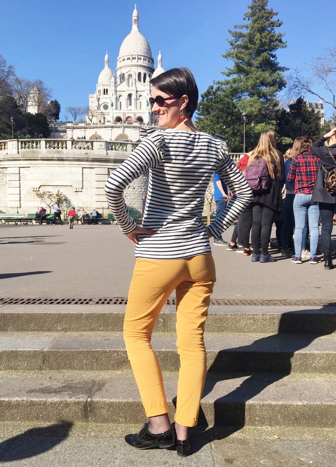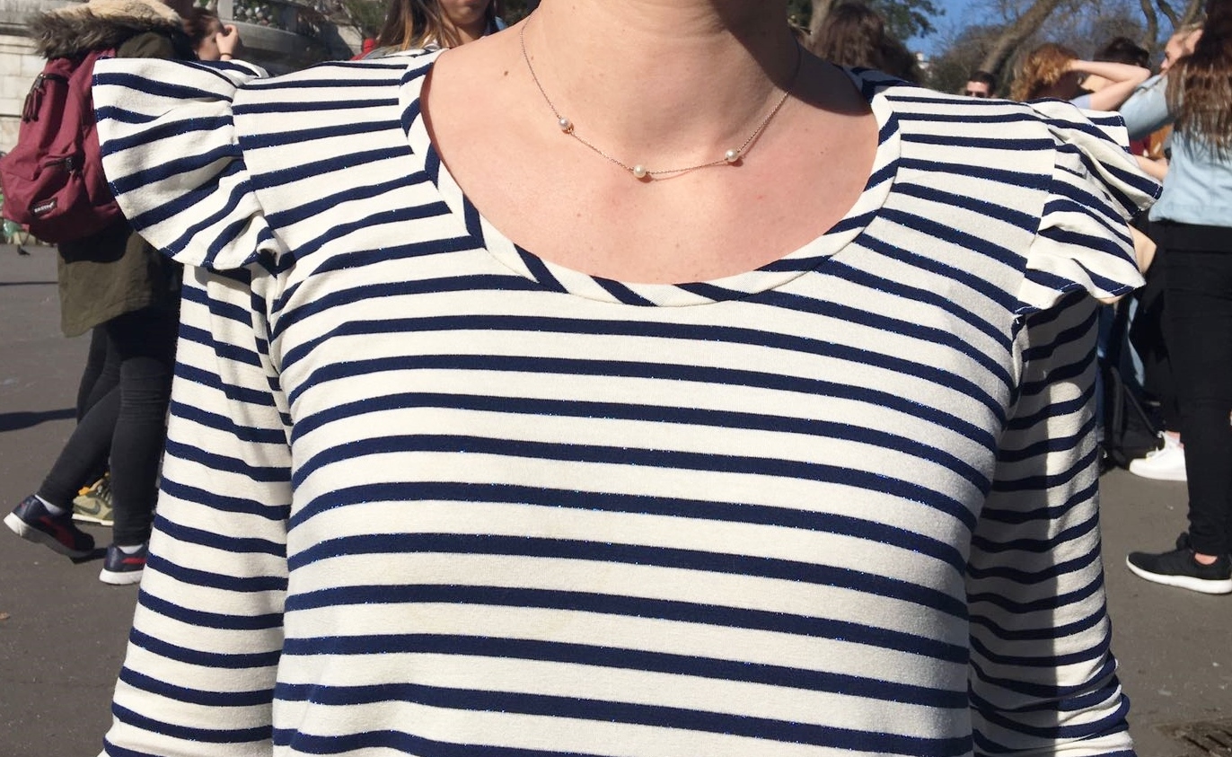 Regardez-moi ce jersey rayé lurex (du marché)…..!!! Et toujours cette encolure décalée que j’adore! Concernant les raccords de l’encolure, c’est juste pas fait exprès du tout… Mais j’avoue, c’est la classe !!