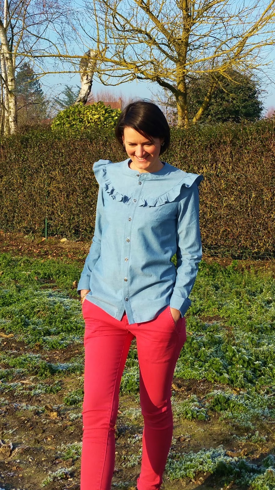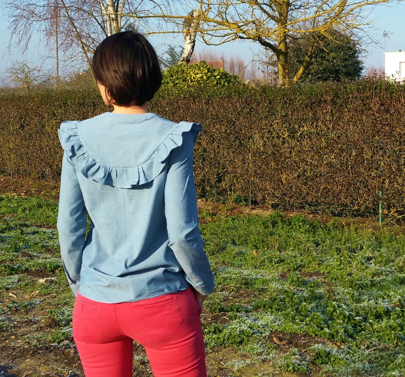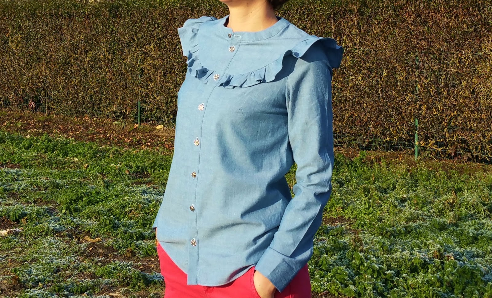 Je vais moi aussi me lancer dans la fabrication de cette chemise, peux-tu me dire de combien tu as réduit le volant car j'ai vu plusieurs autres versions à manches longues où les filles l'ont aussi réduit ? Merci d'avance.