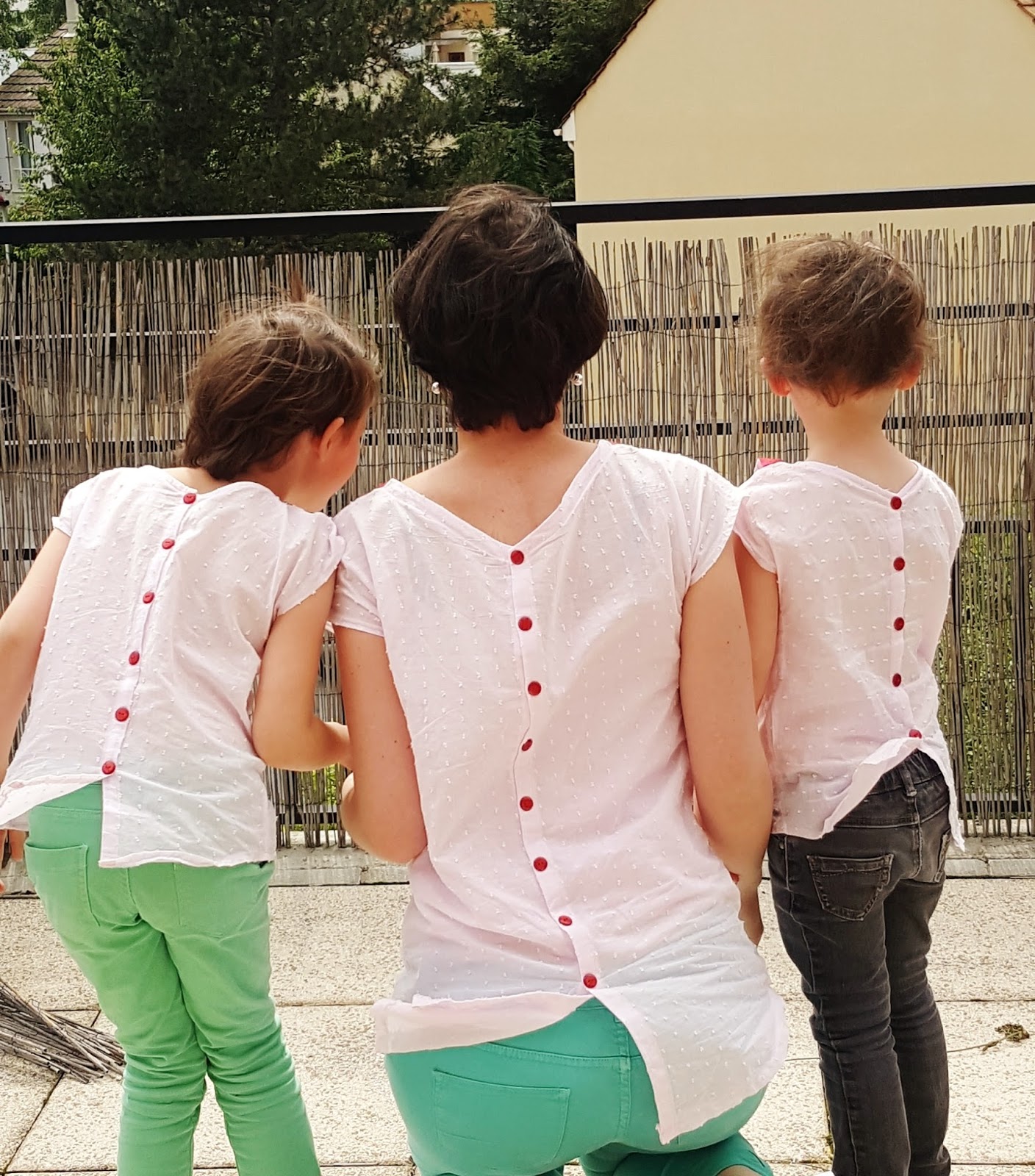 J’adore l’idée du trio mère-filles! Etre habillées de la même manière, même tissu, mêmes détails…