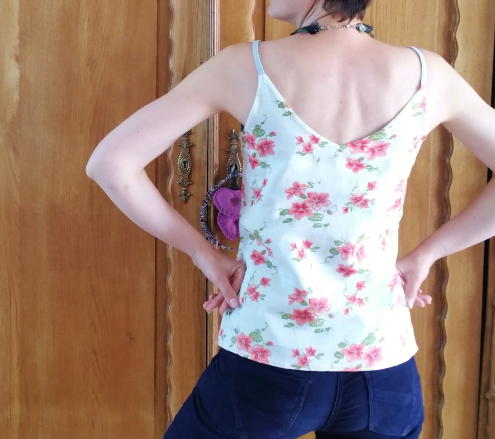 Bref, j’ai tout de même 4 hauts de plus! Ce aime comme miss est vraiment facile et rapide à coudre…. de plus, il se porte sans sous-tif même si je n’ai pas trop osé sur les photos…. A vous de jouer sur la longueur des bretelles afin qu’il ne soit pas « trop » décolleté ou creuser un peu plus le « V » dans le dos!!