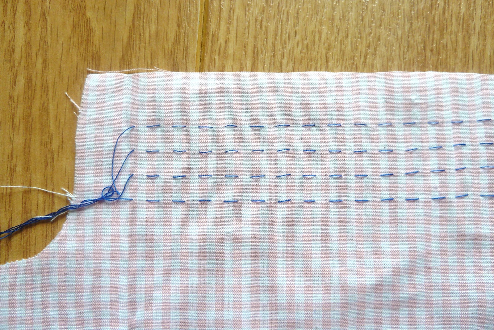 – N’oubliez pas de froncer avec du fil d’une couleur différente de votre tissu. Ce fil vous servira de guide afin de réaliser des points smocks réguliers et droits ! :