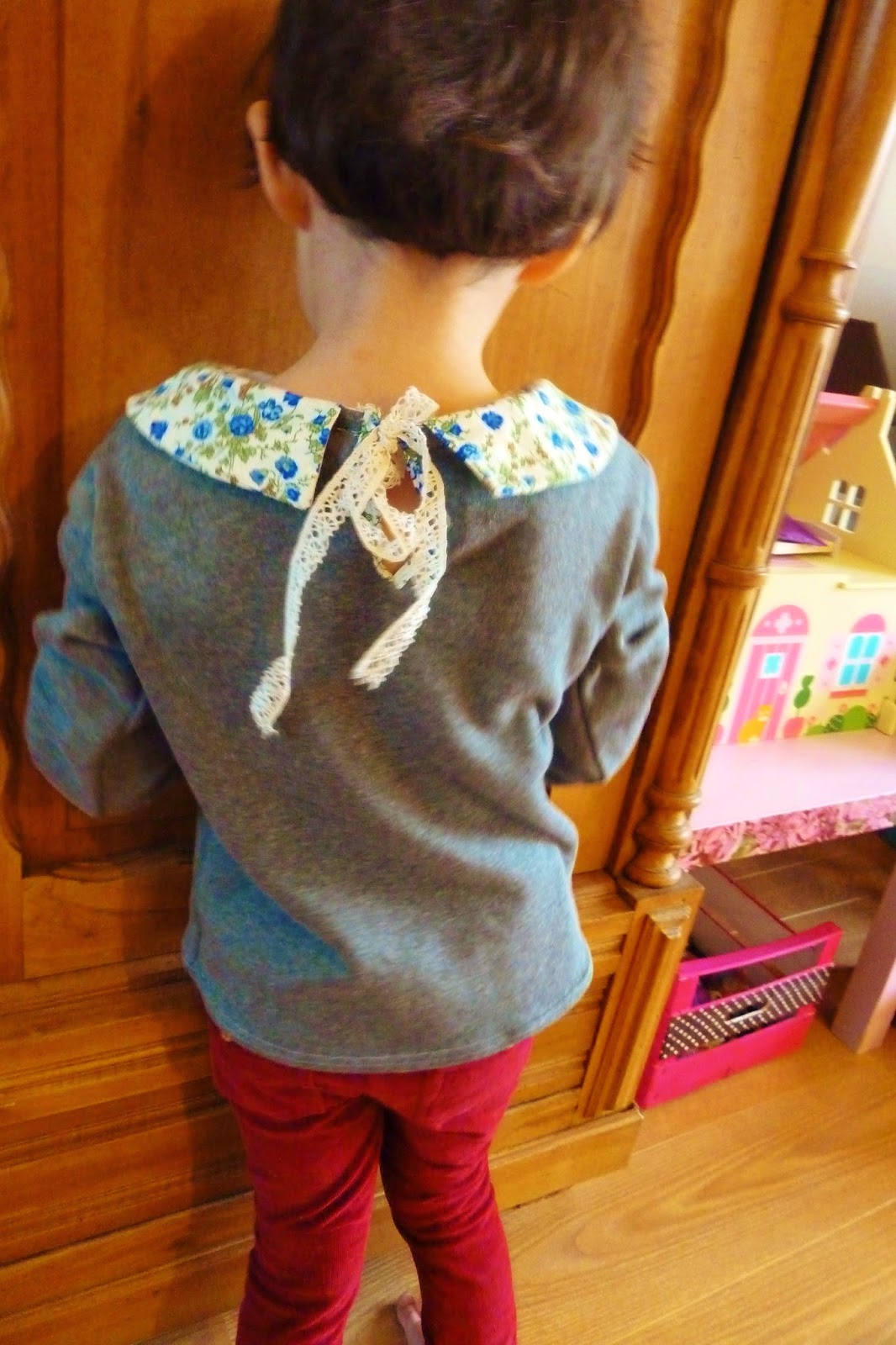 Avec le même genre de jersey, un sweat improvisé pour ma fille avec des finitions-accélérées-qui-auraient-pu-être-plus-jolies, que j’ai bien évidemment caché sur les photos!