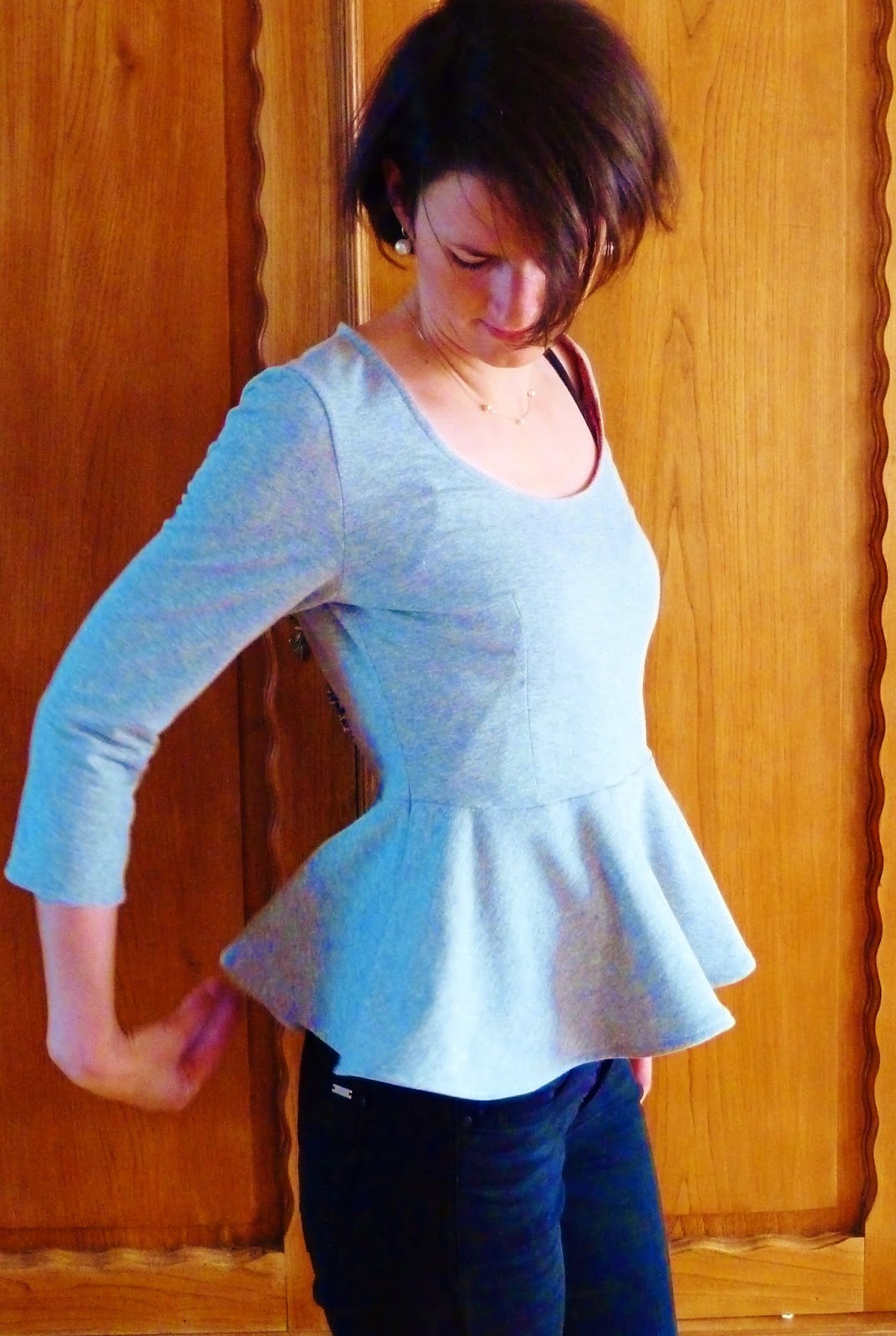 Je constate qu’en effet il est un peu (beaucoup?) court et qu’un bon 5cm de plus ne ferait pas de mal! Je sais qu’avec mon mètre 74 je dois toujours rallonger les hauts mais là je n’avais plus un cm de tissu!!!