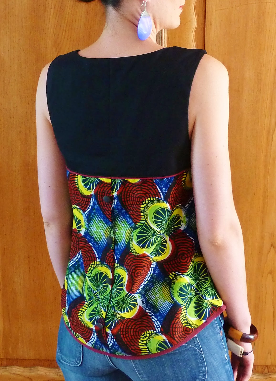 Elle a été réalisée en T40, pour un 38 du commerce. Elle est parfaite et tombe sur les hanches comme j’aime!